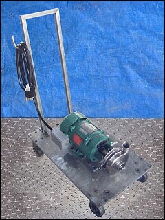 Tri Clover Centrifugal Pump. Model: C114MD56T-S. Flow rate for new pump is 50 gpm with required horsepower and pressure. Discuss with salesperson your process and product to determine if this refurbished pump should handle your specific duty. Impeller size: 3-1/4 in. Reliance electric motor: 1hp, 1725 rpm, 230/460 volts, 4.4/2.2 amp, 3 ph, 60 Hz. (1) 2 in. S-line inlet. (1) 1-1/2 in. S-line outlet. Overall dimensions: 2 ft. 9 in. L. x 1 ft. 5-1/8 in. W. x 2 ft. 11-5/8 in. H.(ACN39).