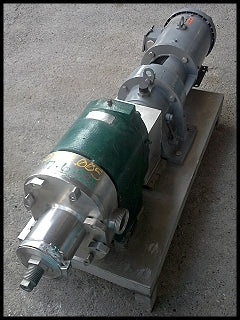 Tri-Clover Positive Displacement Pump. Model: PRR60-2-TC1-4-SL-S. S/N: 201542-01. Leeson motor: 5 hp, 208-230/460 V, 13/6.5 amps, 1760 rpm, 184TC Frame, 3 phase, 60 Hz. Final rpm: 291 (tested). Inlet/outlet: (2) 2 in. bevel seat. Overall dimensions: 4 ft. 3 in. L x 1 ft. 5 in. W x 1 ft. 10 in. H.