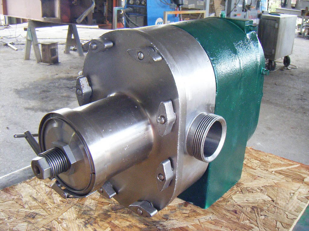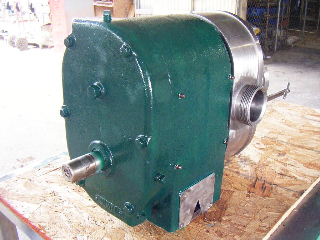 Tri-Clover Positive Displacement Pump. No rotors. (2) 3 in. ACME fittings. Overall dimensions: 1 ft. 10-1/2 in. L x 11 in. W x 1 ft. 2 in. H.