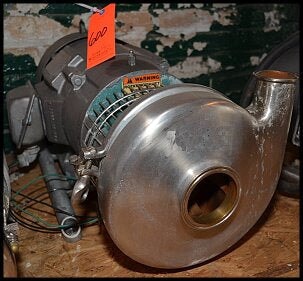 Tri-Clover / Tri-Flo Stainless Steel Centrifugal Pump – 10 HP. Model C328MD217TSKX. Serial 204428-01. Motor: 10 HP, 1755 RPM, 230/460V, 27/13.5 amps, 3-phase, 60 Hz. Inlet / Outlet: : 3 / 2 (in.). Overall dimensions: 24 in. L x 16 in. W x 15 in. H.