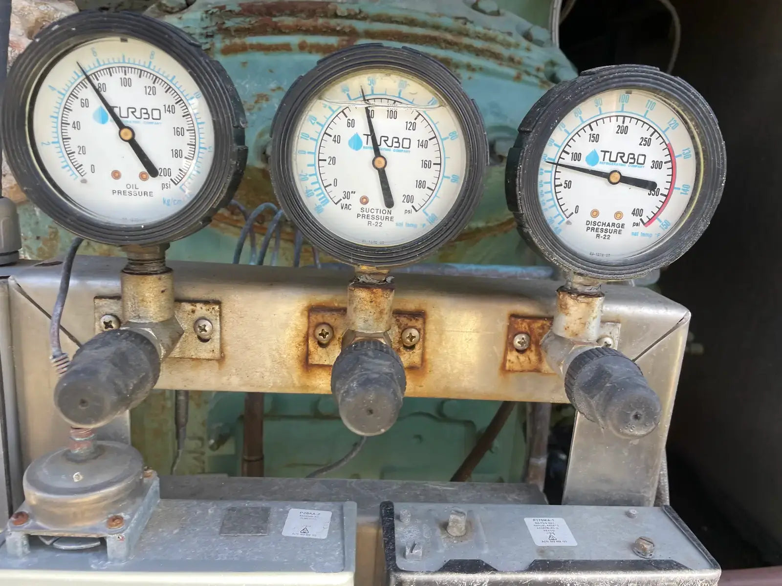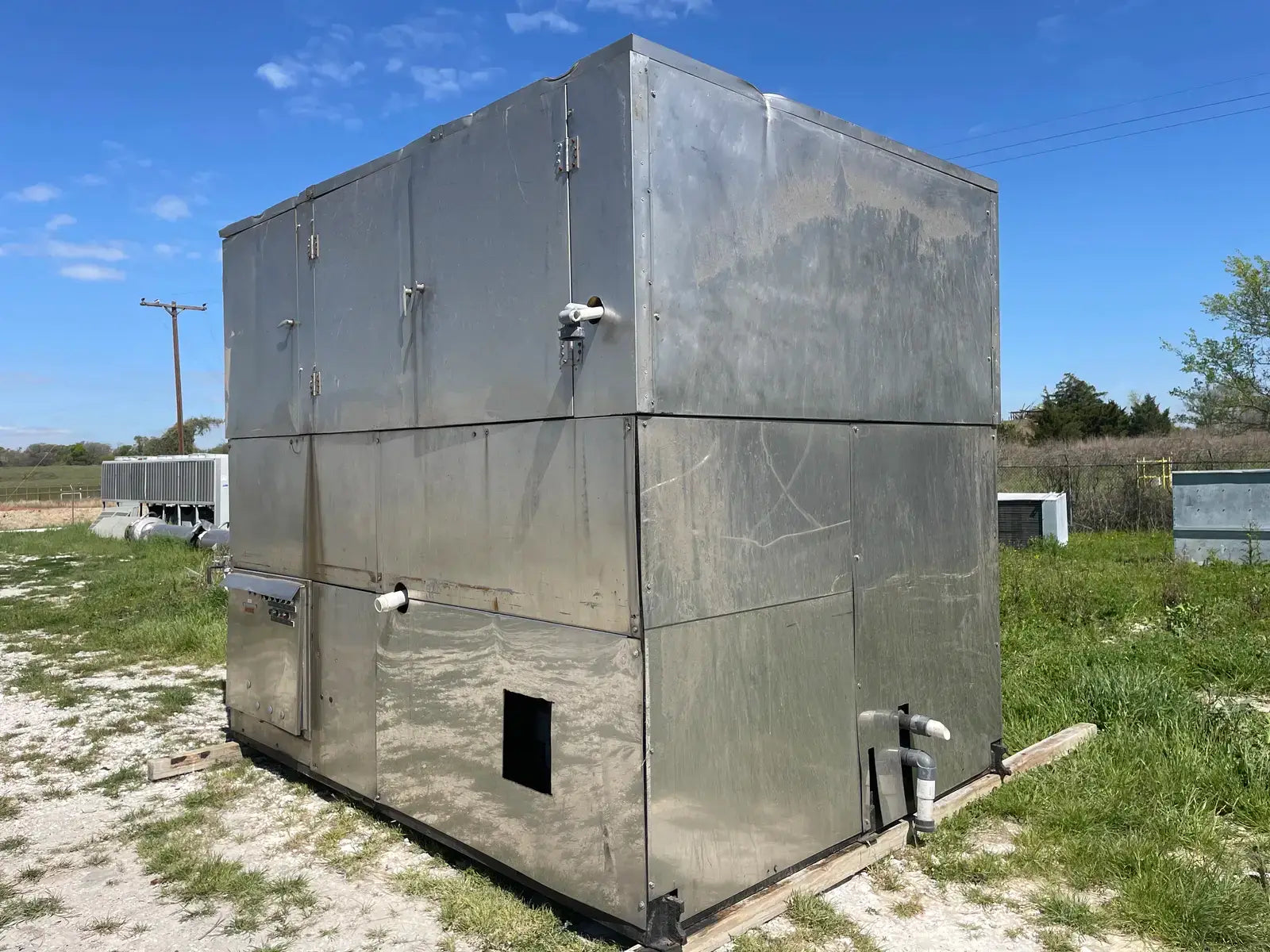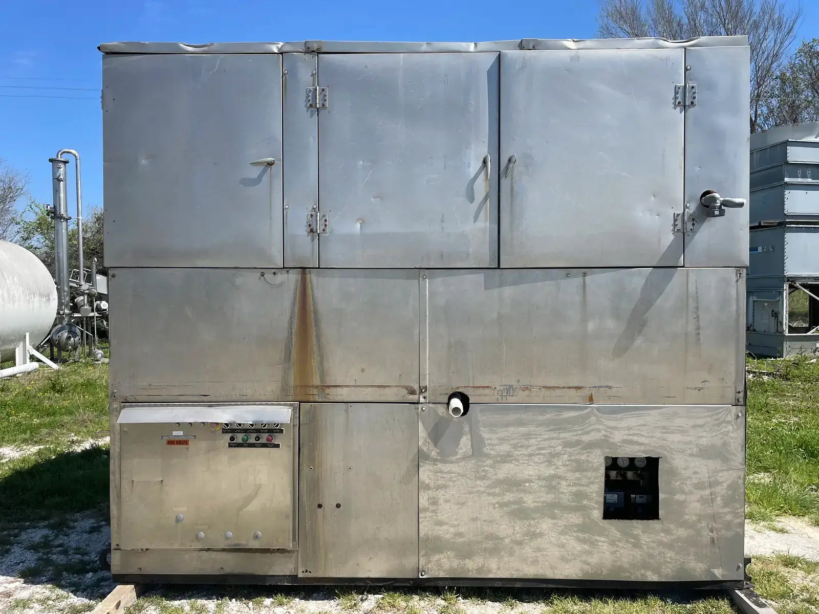 Vogt Ice Turbo C-Line Ice-Maker. Model: CF 40 SC. Nominal Ice Capacity Tons: 20 Tons in 24 hrs. Previous Refrigerant: R-22. Test Pressures: Lo-Side: 150 PSI, Hi-Side: 350 PSI. Semi-Hermetic Compressor - Oty: 1, HP: 75, Volts: 480, Hz: 60, Ph: 3, FLA: 96. Overall Dimensions: 129L x 100W x 110 H. Estimated Weight: 12,160 Lbs. On the removal procedure, Ice Maker was left charged with R-22.