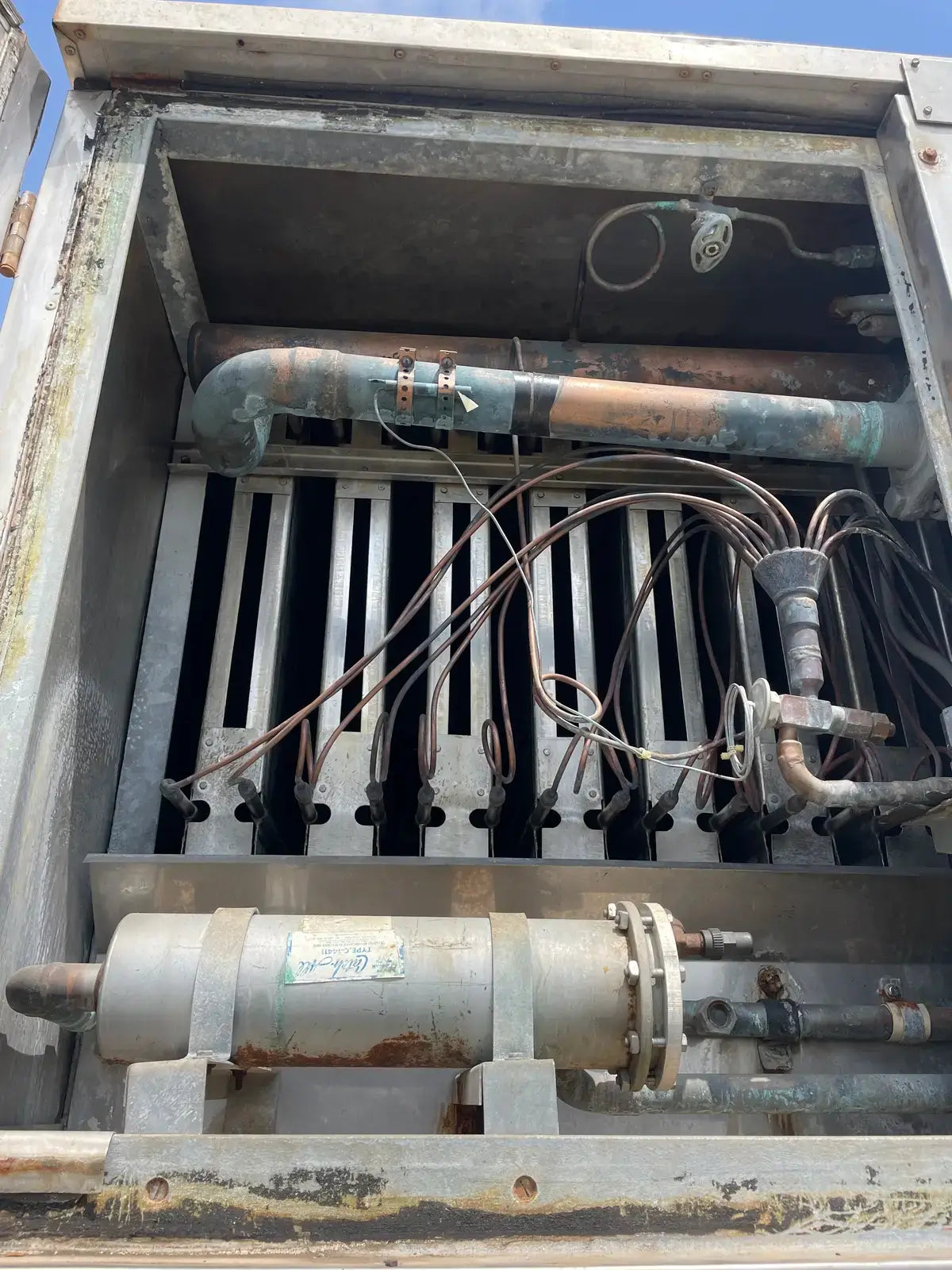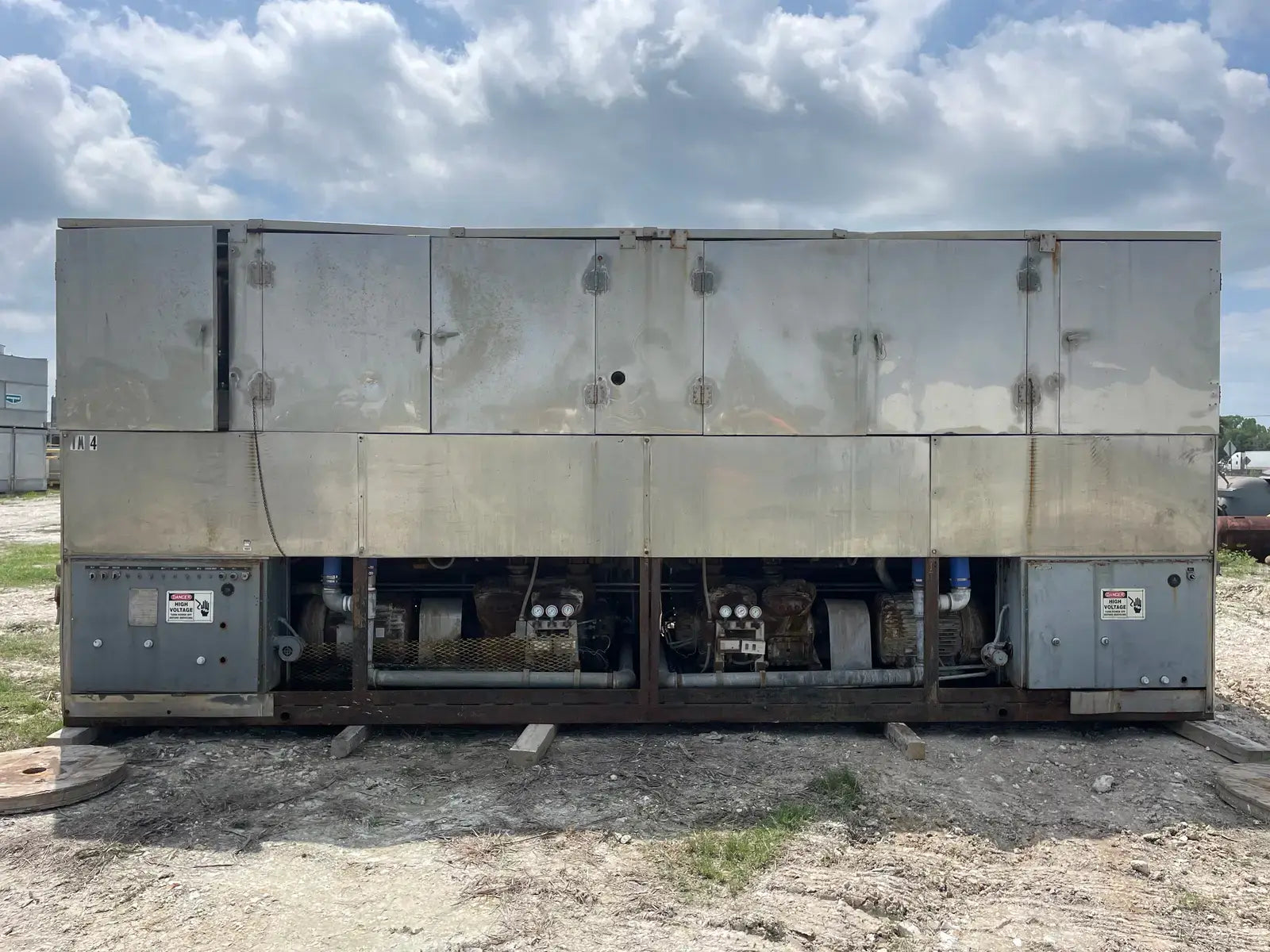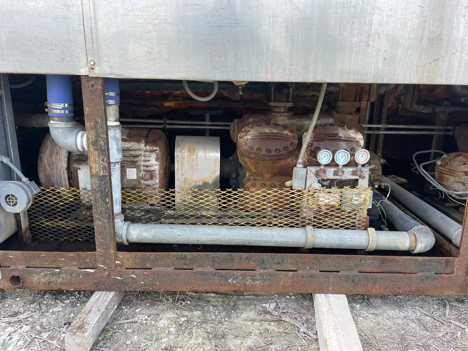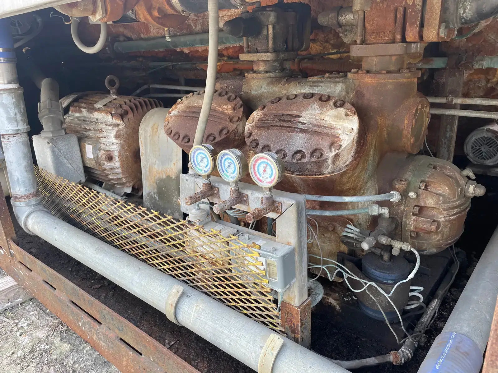 Turbo Vogt Ice Maker. Model: BF80 SCER. Serial No: 7739000. Refrigerant: R-22. Self-Contained evaporative remote. Ton Per Day: 80. Power supply for compressors(2): 75 HP, FLA: 184, Volts: 230, Hz: 3, Ph: 3. Crusher(2): 2 HP, FLA: 6.8, Volts: 230, Hz: 60. Water Pump(4): 3/4 HP, FLA: 2.6 Volts: 230, Hz: 60.