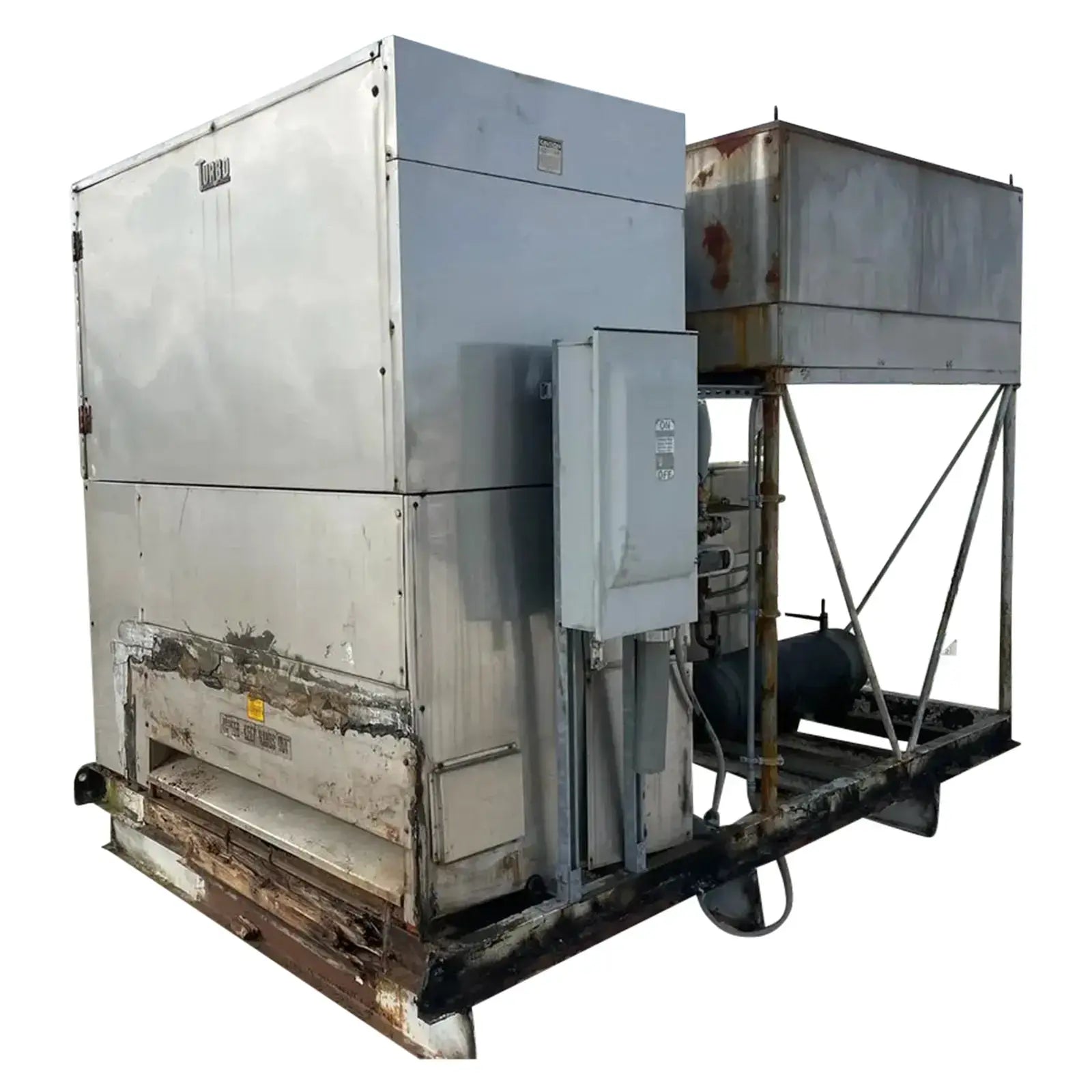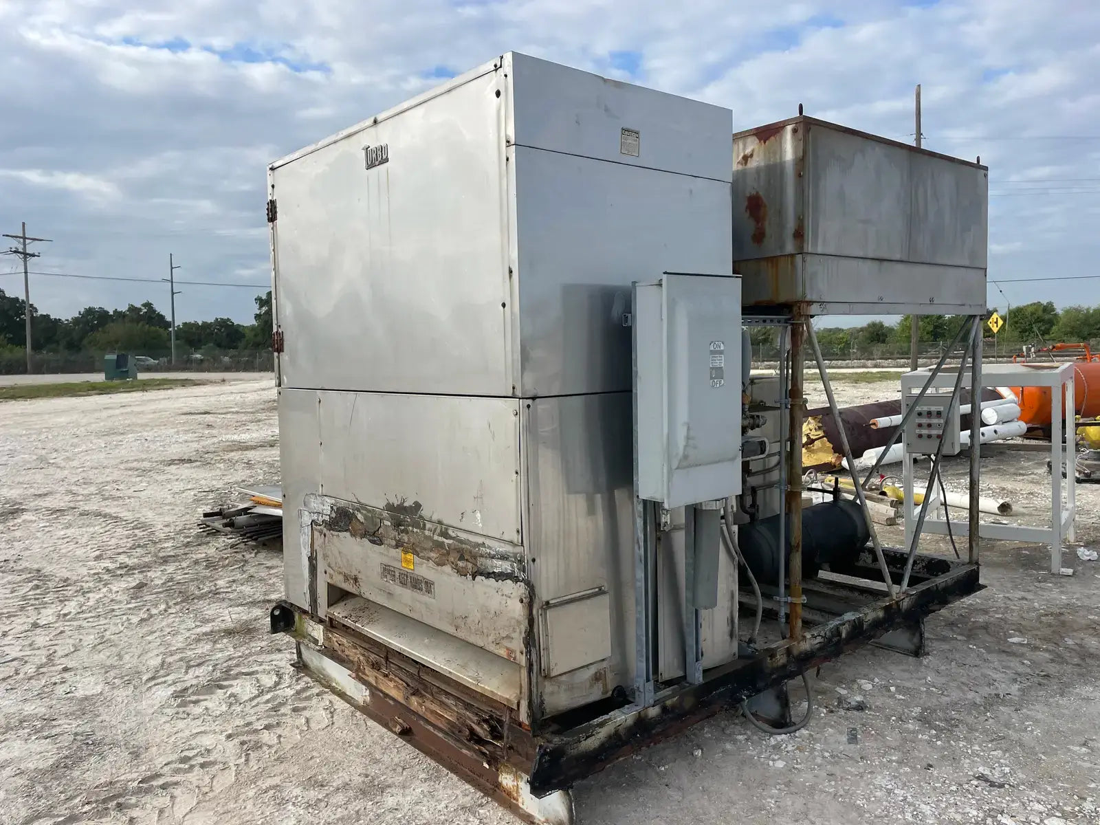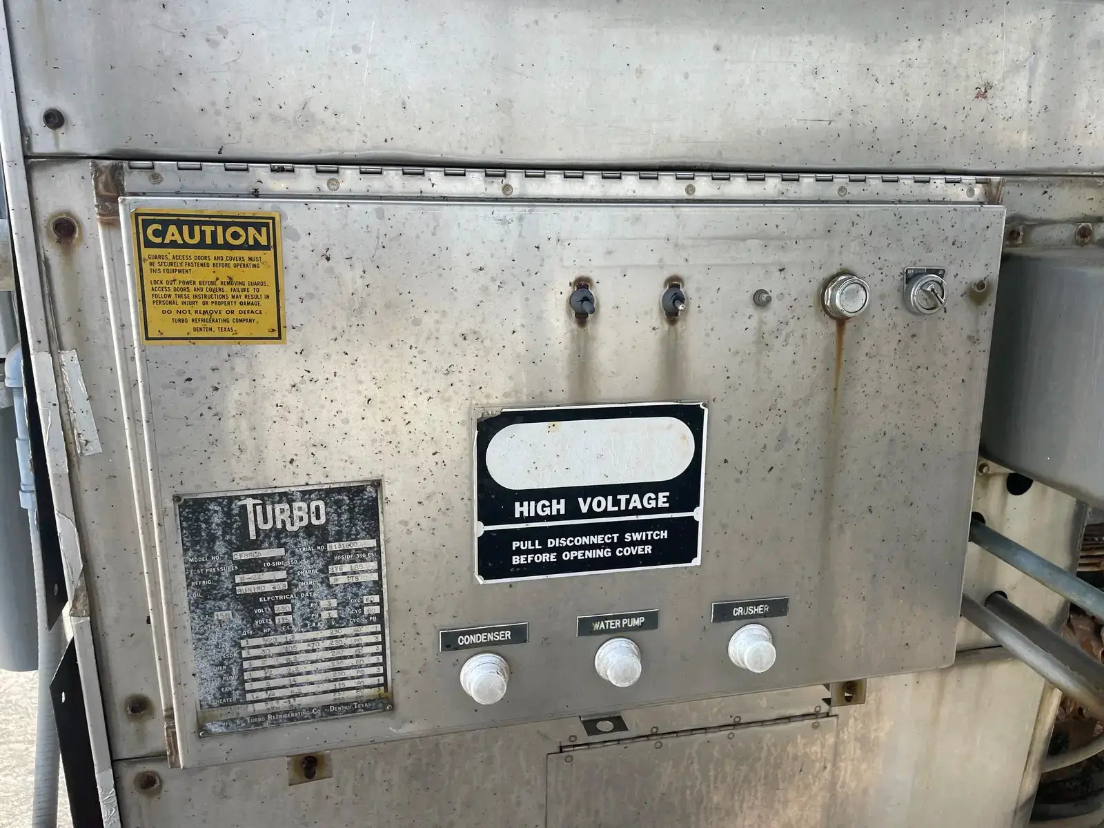 Turbo Ice Refrigeration Plate Ice Maker Package. Model No: CF8SCA. Serial No: 8131600. Test Pressure - Lo-Side: 150 PSI. Hi-Side: 350 PSI. Refrigerant: R-22. Charge: 176 LBS. Electrical Data - FLA: 156, Volts: 230, Ph: 3, Hz; 60.