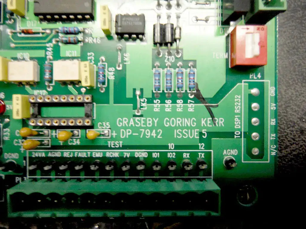Unused Goring Kerr Metal Detector Part. Model: DP-7942 Issue 5. PC Board Power Supply. Note: the F1 and F5 fuses are missing. (ACN12)