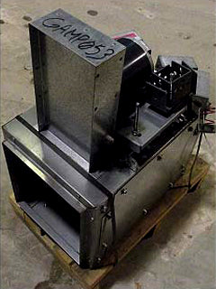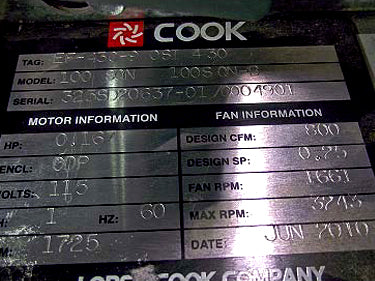 Unused Loren Cook SQN-B Square Inline Fan / Blower with 1/6 HP motor. Size: 100. Duct size: 12 in. square. Serial No: 325SD20637-01-0004901. Fan is centrifugal style with duct-mounted housing and belt-driven. Galvanized steel and aluminum construction. 800 CFM. 1661 RPM. Max motor Frame size: 143T. Motor specs: 1/6 HP, 115V, 3.6 Amps, 1-phase, 60 Hz, 1725 RPM, ODP. Unit is designed to be heat, oil, and corrosion resistant. Approximate shipping weight: 80 lbs. Overall Dimensions: 22 in. x 14.75 in. x 27.5 in. H. (ACN16)