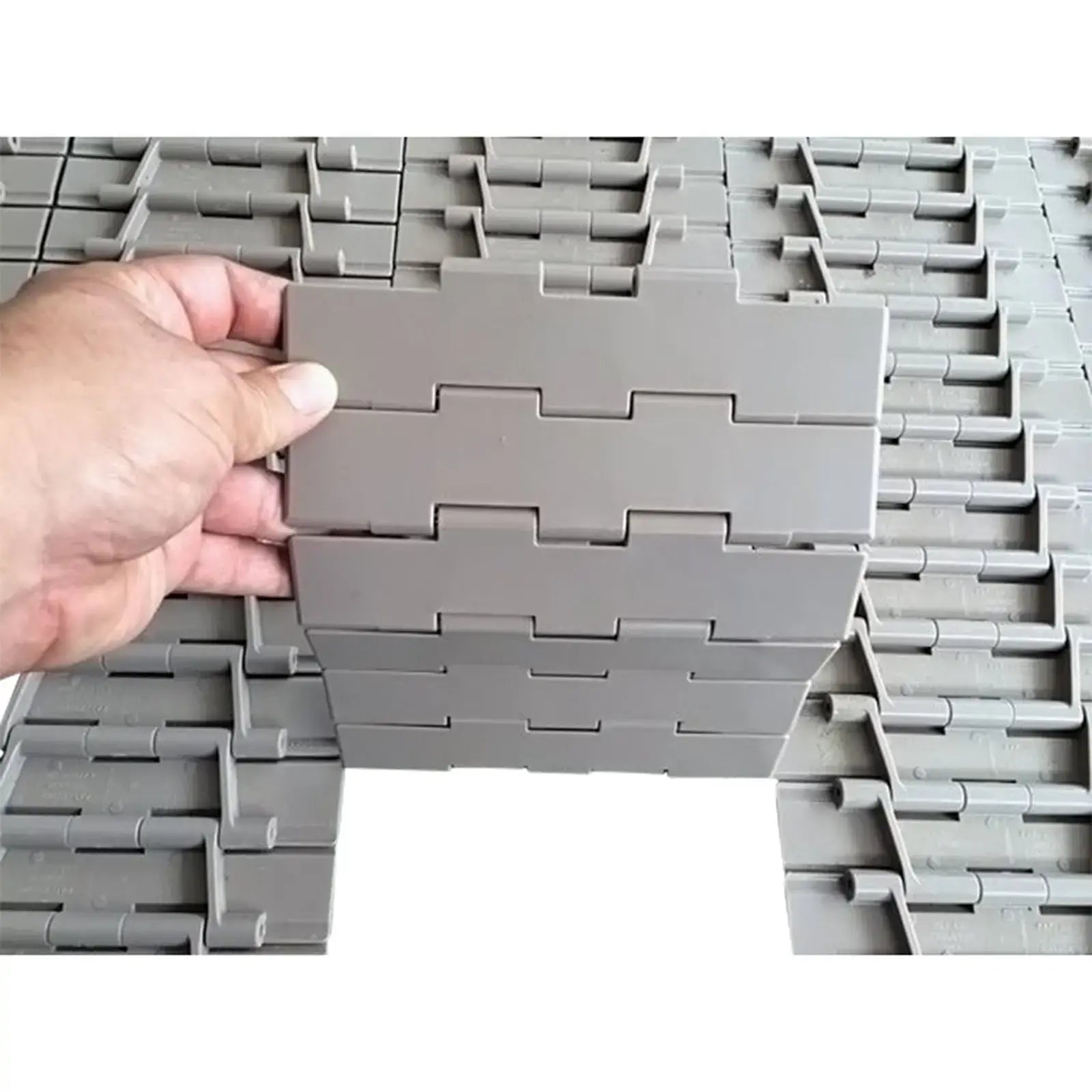 Rexnord Tabletop Conveyor Belting. Model: Rex 821. Width: 7.5 inch. Color: Gray/Brown. Condition: appears to be unused. Available linear feet: 210. We can quote as a lot or by the foot.