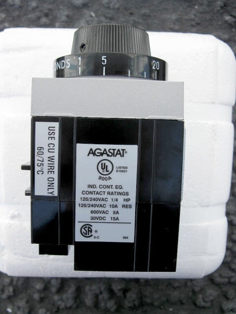 Unused Tyco Agastat Timing Relay. Model: 7012AK. Time: 1-300 seconds. Coil: 120v, 60 Hz. Overall dimensions: 2-1/2 in. L x 2-1/2 in. W x 4-1/2 in. H.