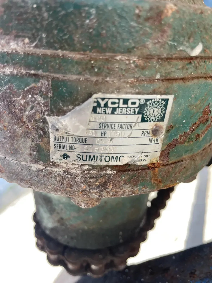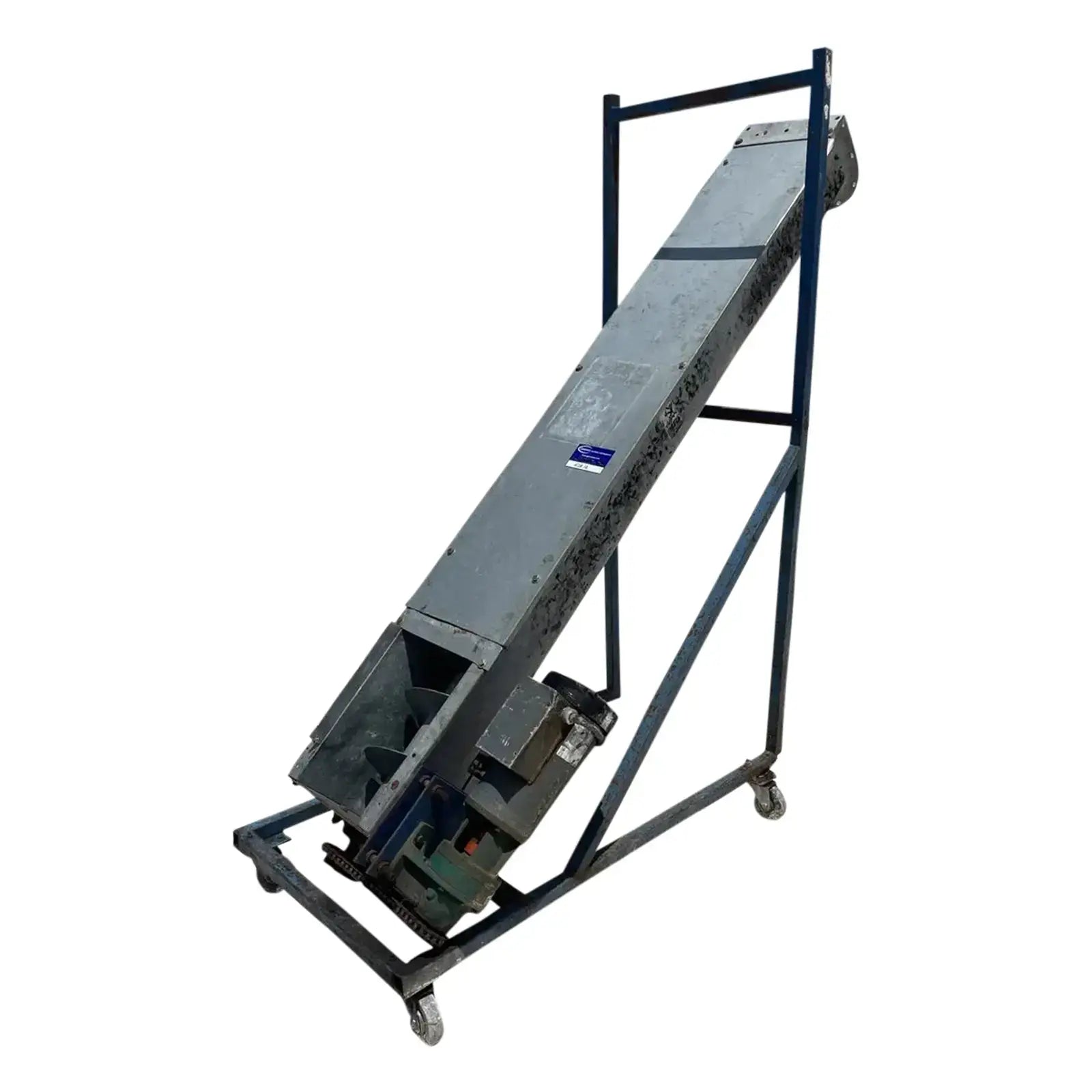 Vertical Incline Galvanized Steel Auger Conveyor. Chute Dimensions(in): 67 L x 14 W. Overall Dimensions(in): 75 L x 29 W x 83 H. The auger is set on a movable 4 wheel base which can be moved easy. The Auger is operated by a 2 HP Marathon Motor with a Sumitomo Gear Drive. Marathon Electric Motor: HP: 2, HZ: 60, RPM: 1725, Volt: 115/208-230, FLA: 20/10.8-10, Part No: 592. Model: UVJ56B17F5510B L, Frame: 56C-95. Sumitomo Gear Drive: Output Torque(LBS): 849, RPM:1750, Serial No: 275351.