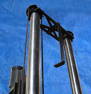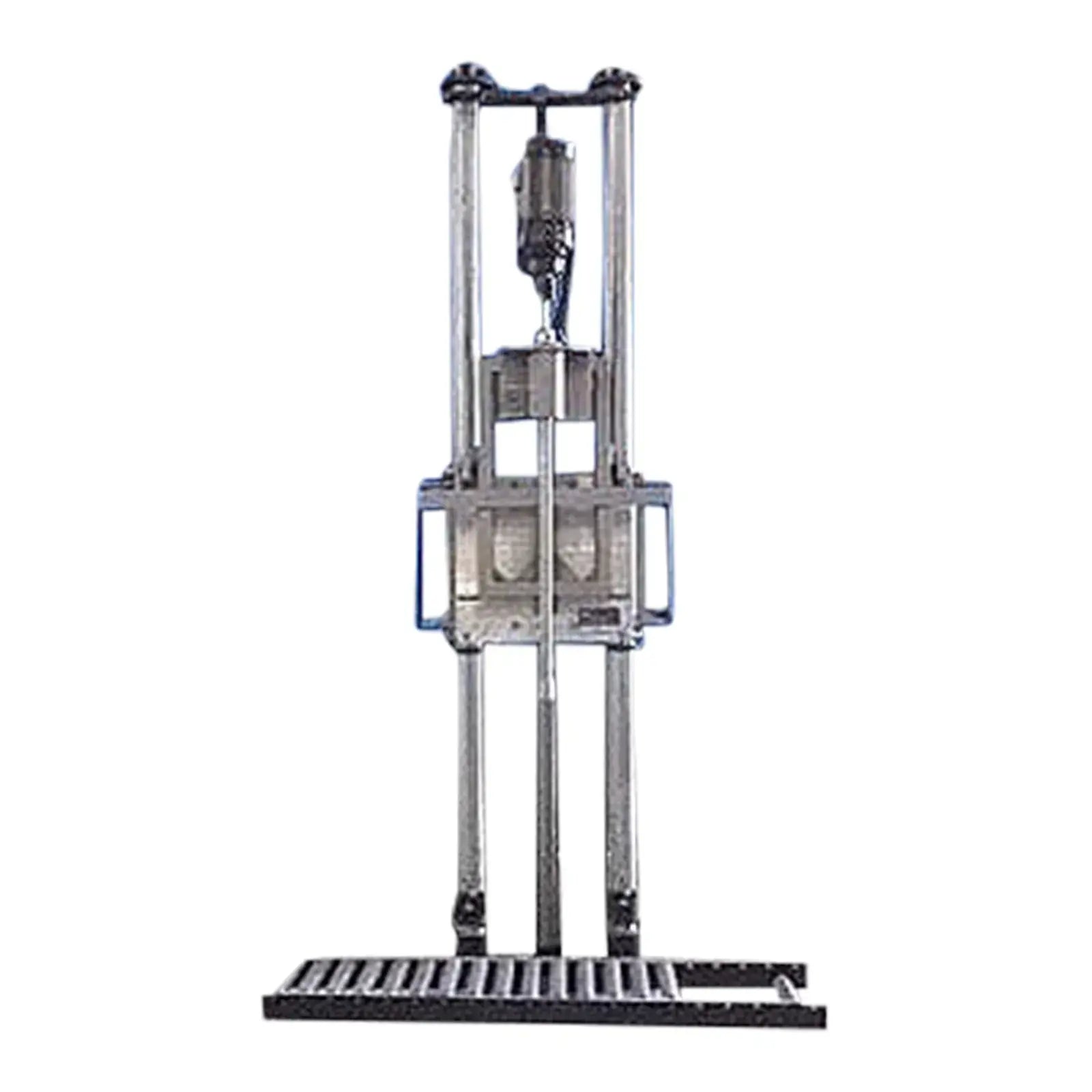 Vertical Mixer/Blender. Stainless Steel. Shaft: 36 in; blade: 12 in, diameter. Pneumatic piston to raise and lower blades. Roller conveyors to receive containers. Delta power hydraulic motor, Model DM23, with circuit pak hydraulic power unit. Transmission: 1½ hp. Gear motor: 220 V. Output: 219 rpm. Overall dimensions: 60 in. L x 48 in. W x 120 in. H. This machine is manual operation but can be converted to automate, if desired. (XMR46a)
