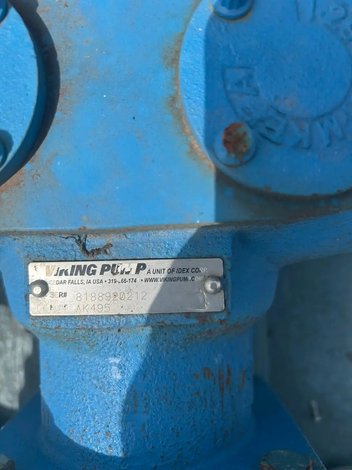 Viking 495 Series Rotary Gear Pump. Model: AK495. Serial No: 8188920212. Nominal Flow: 8-115 GPM. Max Pressure: 250 PSI. Temperature Range: -40 F to 300 F.