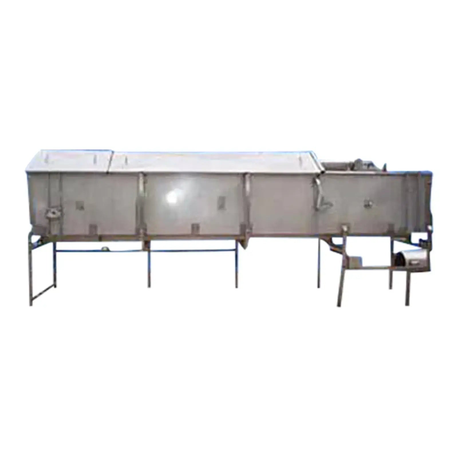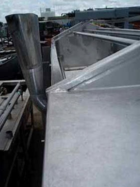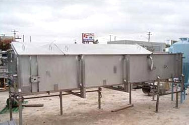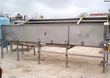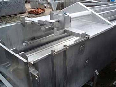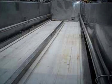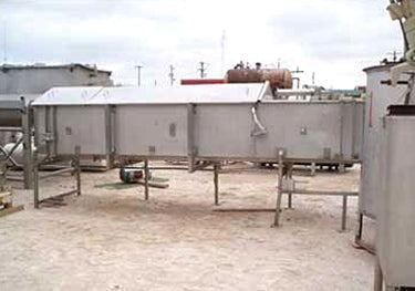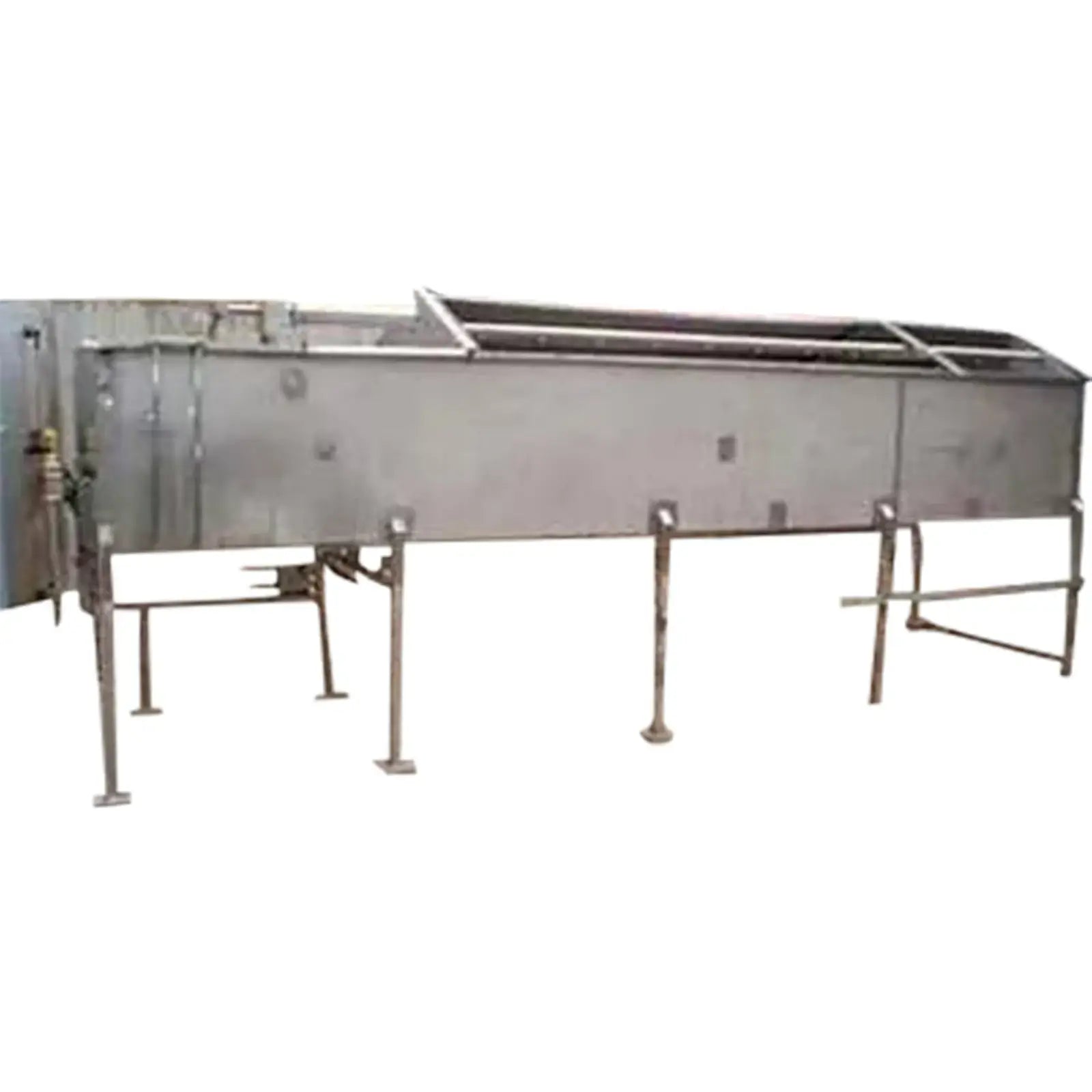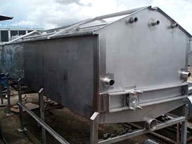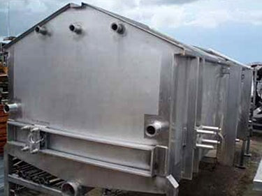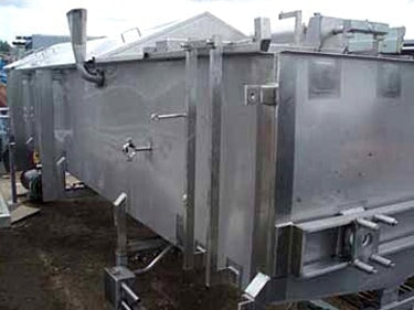 Viking Spray Chamber - 48 in. Wide. Inside dimensions: 15 ft. 10 in. L x 4 ft. W x 1 ft. 11 in. H. Inlets: (3) 1-1/2 in. dia. S-line fittings (sprayers), (2) 2 in. dia. S-line fittings (sprayers), (3) 2 in. dia. S-line fittings. Outlets: (1) 4 in. dia. S-line drain port, (1) 2 in. dia S-line overflow port. Overall dimensions: 17 ft. 2 in. L x 4 ft. 11 in. W x 6 ft. 4-1/2 in. H.