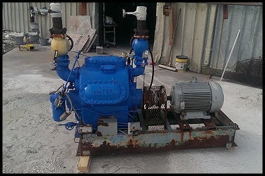 Used Vilter 446 6-Cylinder Reciprocating Compressor. Vilter Manufacturing Corp. Milwaukee, WI USA. Model: VMC 440. Refrigerant: AMMO. S/N: 30630 A. Order: E-22878. Size: A12K-446. Test Pressure (PSIG): 525 / 375. This 440 VMC compressor has 6 cylinders with a displacement at max RPM of 232 CFM. Nominal rating (1200 RPM): 85.2 TR / 57 BHP with R-717 Ammonia (+20F/95F), 19.3 TR / 37.8 BHP (-25F/95F). Ajax Electric Motor Corp. Rochester NY, 30 HP, 1175 RPM, 208-230/460 Volt, 86-78/39 amps, TEFC, SF 1.15, 60 Hz, 3-phase, motor made in Brazil. Manual available (PDF). Suction/Discharge: 4 in. / 3 in. Shipping weight (bare/package): 1,900 lbs. / 3,500 lbs. Overall Dimensions: 93 in. L x 43 in. W x 41 in. H.