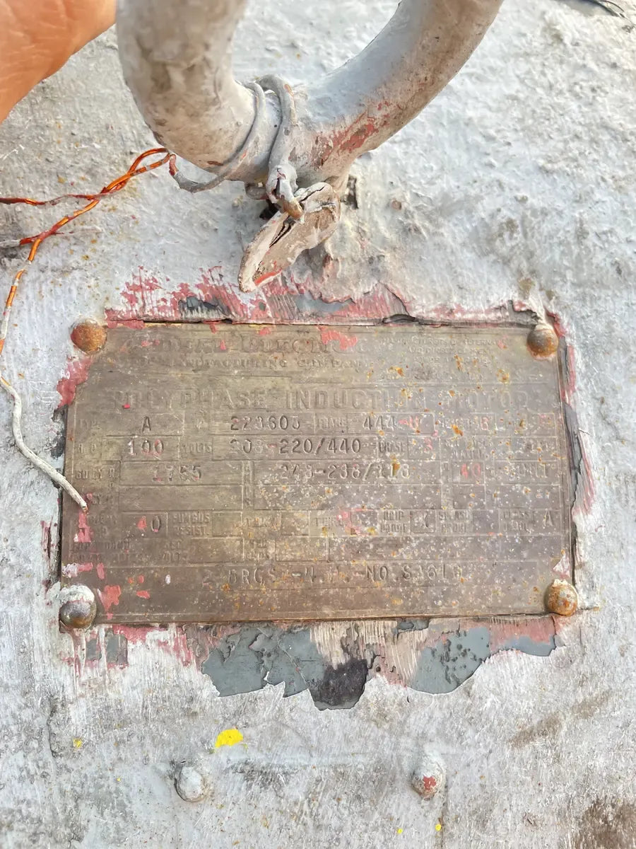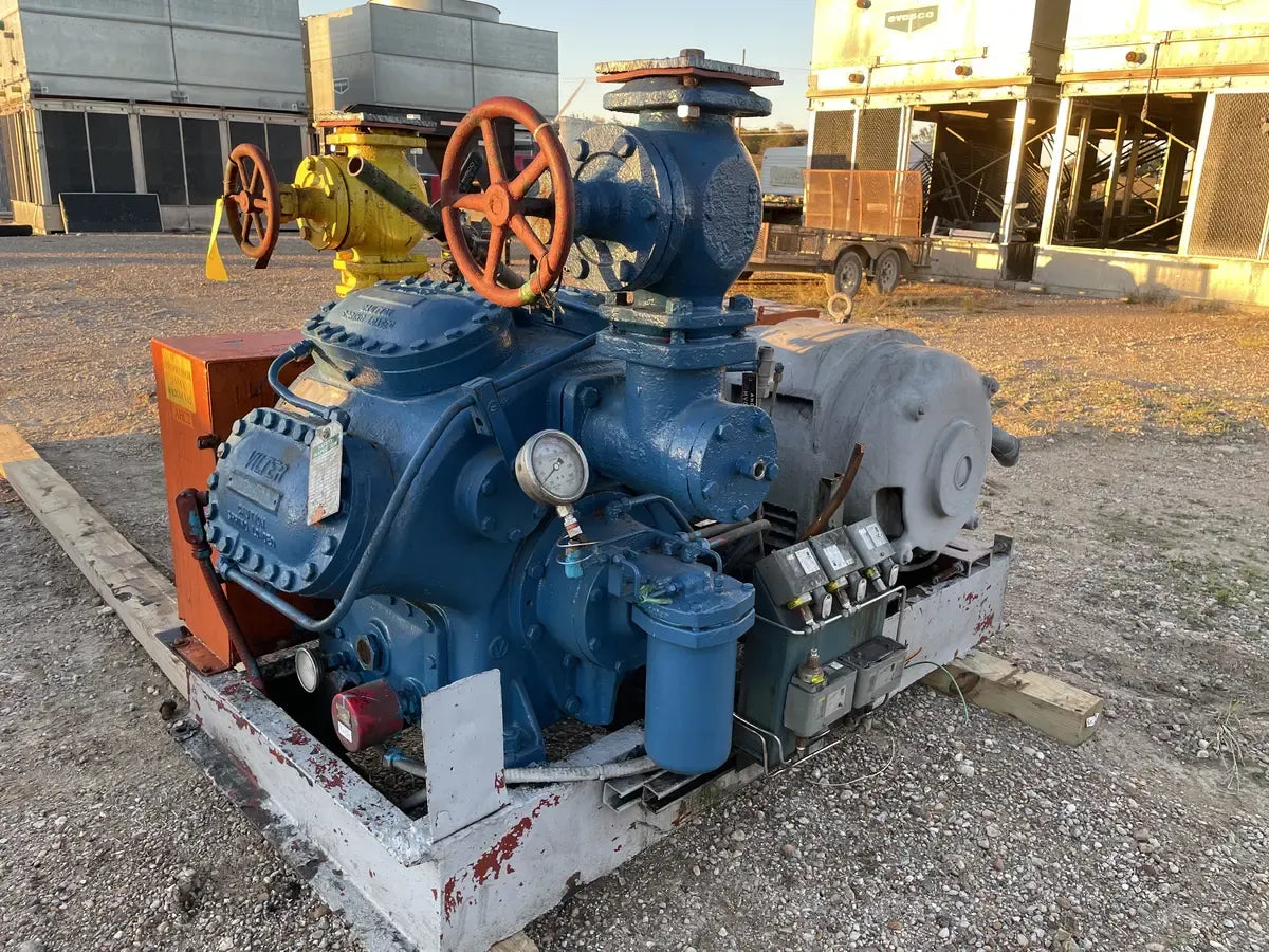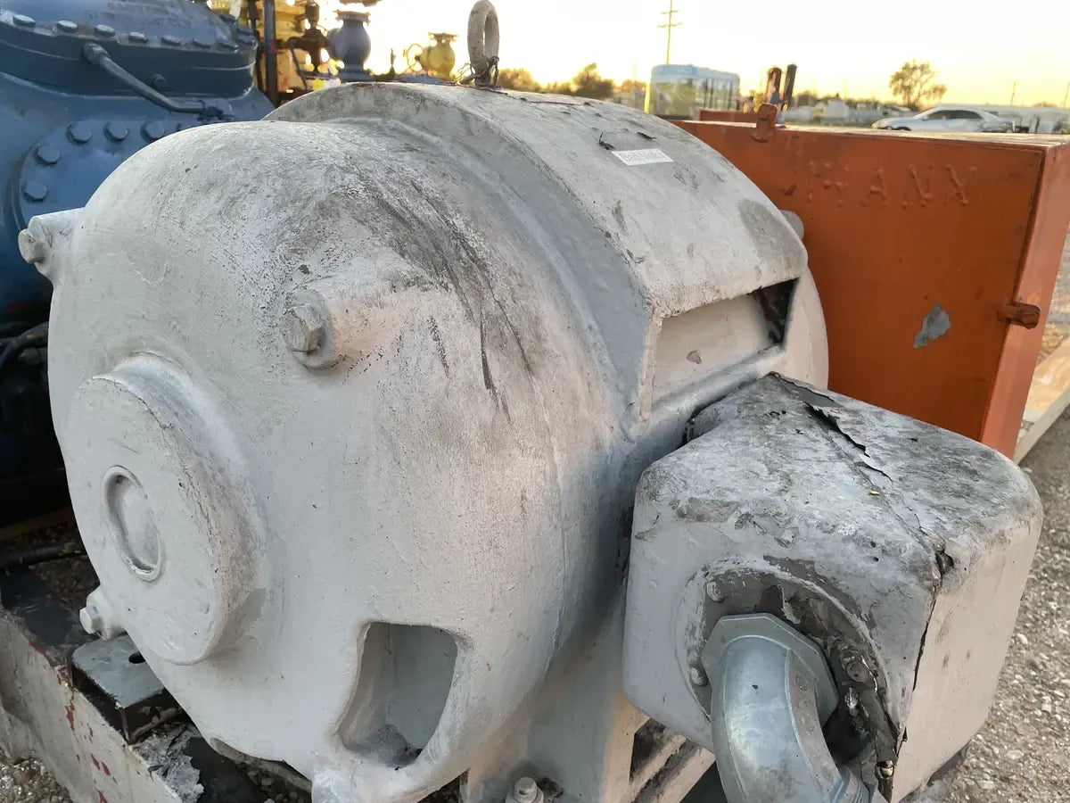 Vilter 448 8-Cylinder Reciprocating Compressor - Model: AK448R, Serial No: H57137-2, Mfg Year: 2004, Number of Cylinder: 8. Maximum RPM: 1200, Bore & Stroke-In (mm): 114x89, Displacement M3hr: 309, Suction Connection(in): 4. Dis Connection(in): 3, Oil Charge Gallon (Liter): 7(27), Maximum Discharge Temp C: 300(149), Crankcase of Temp Range: 43-54. Previously had a Lock Out Tag. Ideal Polyphase Induction Motor: Type: A, Serial No: 223603, Frame: 444-U, HP: 100, Volts: 108-220/440, RPM: 1755, AMPS: 248-239/118. Bad Motor