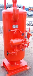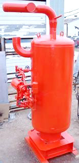 Vilter Ammonia Vertical Intercooler- 300 Gallon. S/N: B-29995-7B. Nat'l Bd: 7984. Shell side MAWP: 150 psi @ 650 °F. Inlets/outlets: (1) 1/2 in. dia. port, (1) 1 in. dia. port, (2) 1-1/2 in. dia. FNPT fittings, (2) 2 in. dia. ports, (1) 5 in. dia. port, (1) 6 in. dia. port. Overall dimensions: 3 ft. 6 in. L x 3 ft. W x 10 ft. 10 in. H.(HB2)