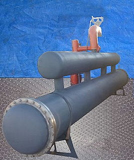 Used Vilter Ammonia Stainless Steel Tube Chiller with Surge Drum. Tonnage rating: 264. Refrigerant: flooded ammonia(38°F). Capacity: 127gpm (chilling water from 95°F to 45°F). BTU’s: 3,167,500. Material of construction: 304 stainless steel. Heat exchanger maximum design pressure, shell side: 250 psi @ 200°F, tube side: 75 psi @ 200°F. Hydrostatic test pressure: 375 psi. (156) 1-1/4 in. dia. x 20 ft. L multi-tubes. Heat transfer surface area: approx. 1,020.5 ft. sq. Surge Drum- 260 gallons, straight-wall dimensions: 1 ft. 8 in. dia. x 16 ft. 3 in. L. (2) Parker Float Switches, power supply: 120/240 VAC, 7 amps, pilot duty: 240 VA. Parker Solenoid Valve, S/N: 10816YR02, design pressure: 400 psi, MOPD: 300 psi. (2) Refrigerating Specialty Co. Pressure Regulators, design pressure: 300 psig, range: 75-280 psig. Modular Solenoid Pilot, S/N: V06399, broad view watts: 30. (2) Safety Relief Valves, type: 804, set pressure: 150 psig, capacity air: 546 scfm. Inlets: (1) 3 in. dia. ANSI 150lb flanged port, (1) 4 in. dia. port. Outlets: (2) 1-1/4 in. dia. John Perry fittings (pressure relief), (1) 1-1/2 in. dia. flanged port, (1) 3 in. dia. ANSI 150lb. flanged port. Overall dimensions: 23 ft. L x 3 ft. 6 in. W x 8 ft. H.(ACN533).