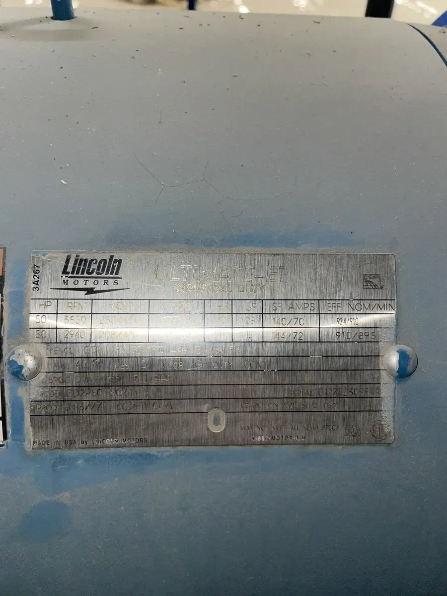 - If Multiple Motors, Motor Descriptions vs specs: Lincoln Motor, Model SD2P50TSC61Y, 50HP, 3550 RPM, 230/460V, 112/56 AMPS, 3 Phase, 60 Hz, ODP Enclosure, 324TSC Frame.