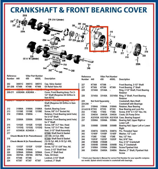 Vilter Front Bearing Assembly for 3 Shaft. Part No: N30294A. Fits Models: 440, 450, 450XL.