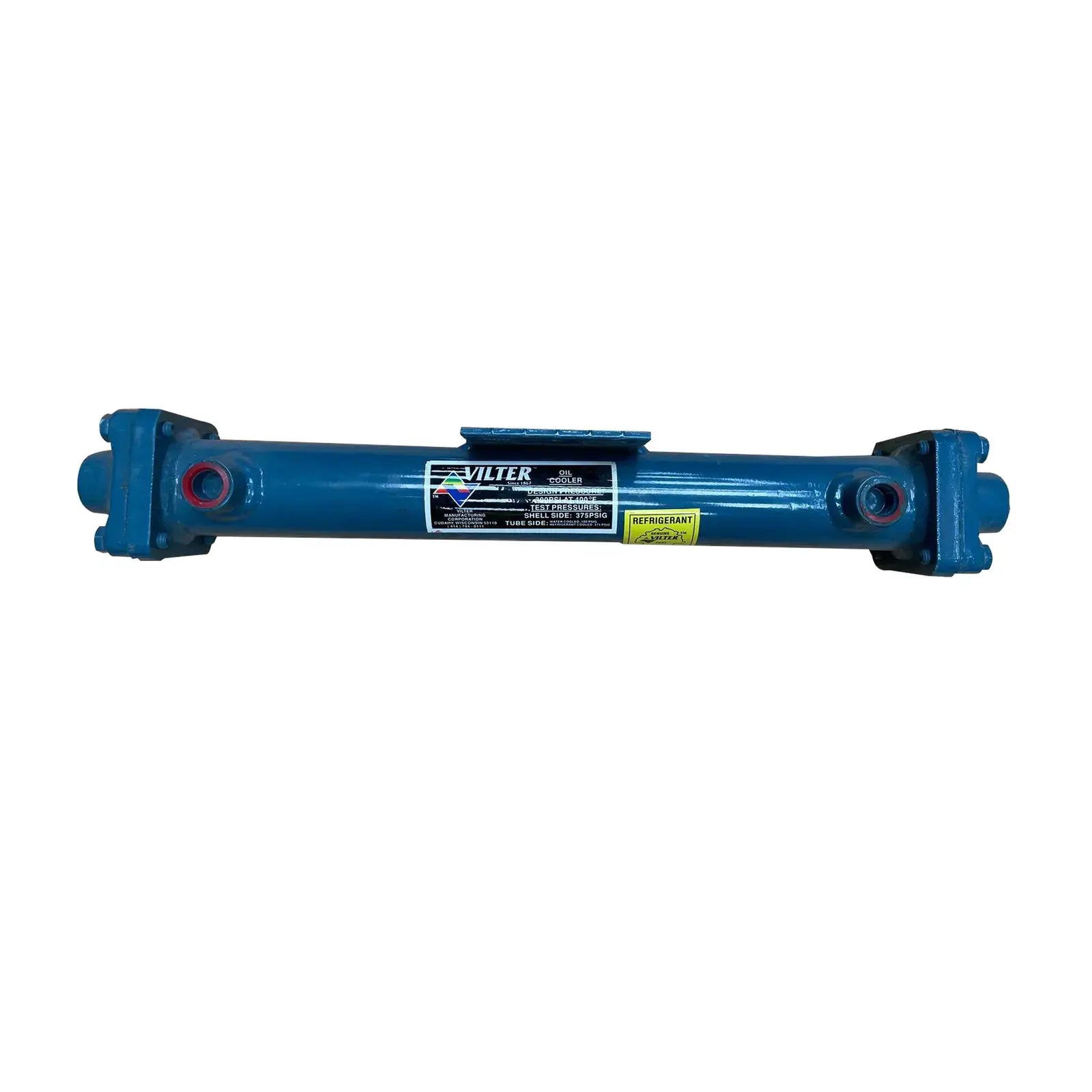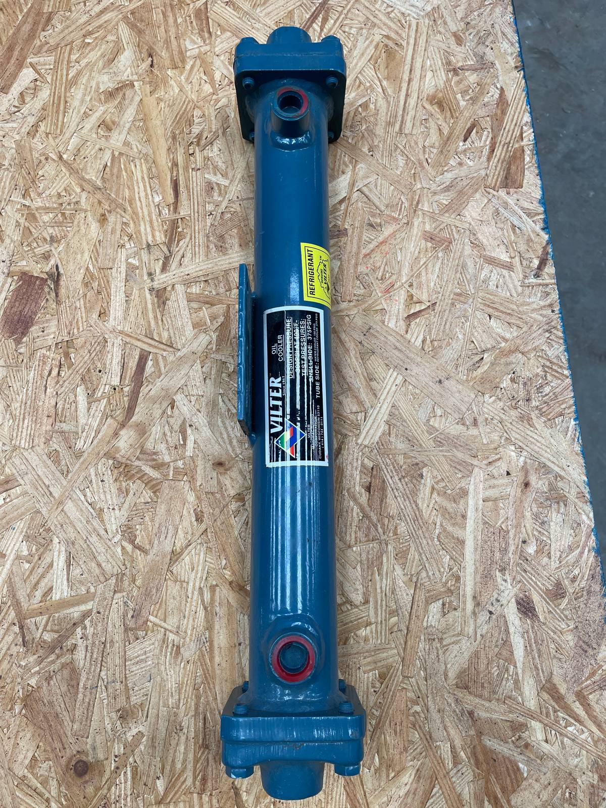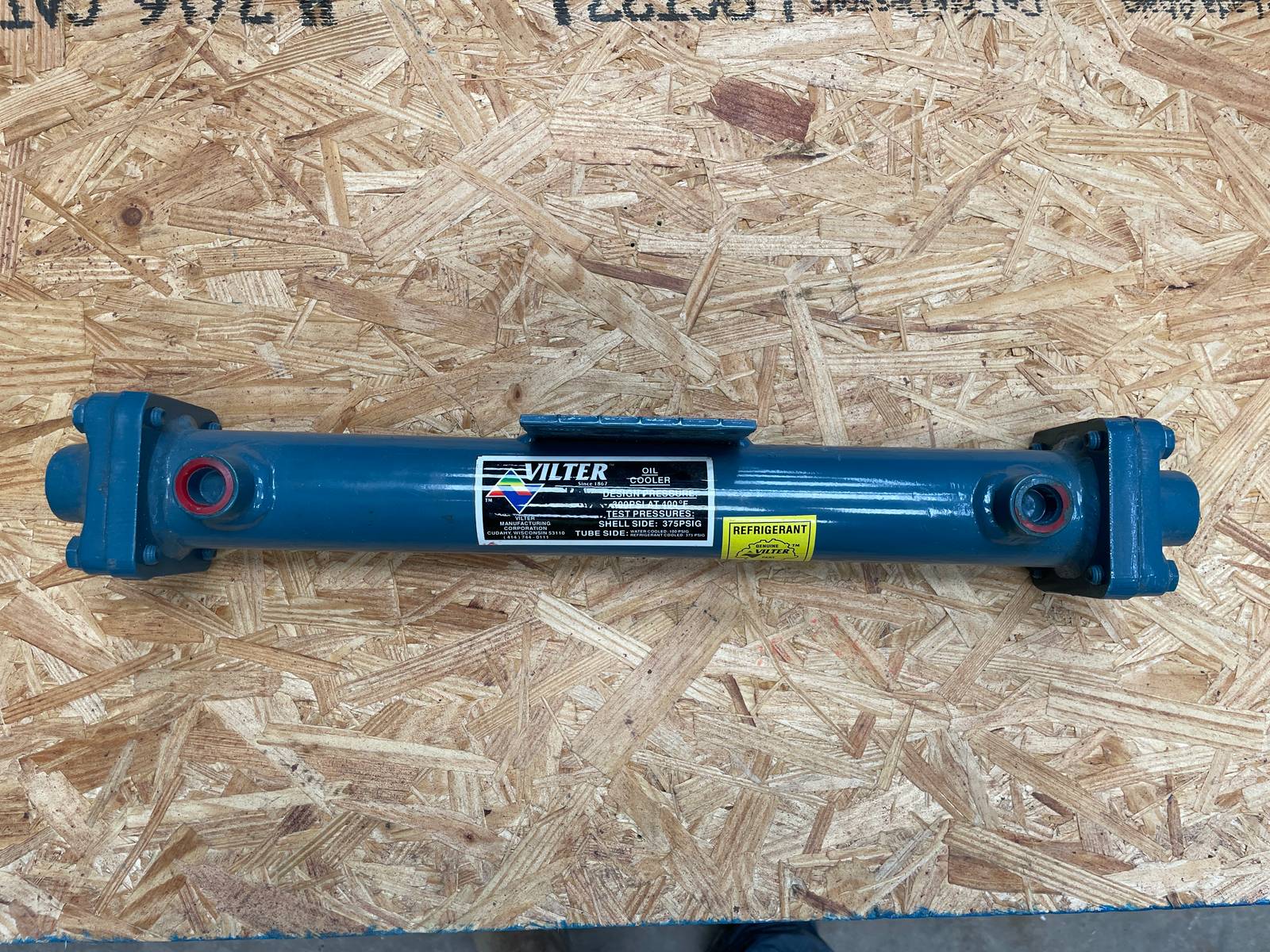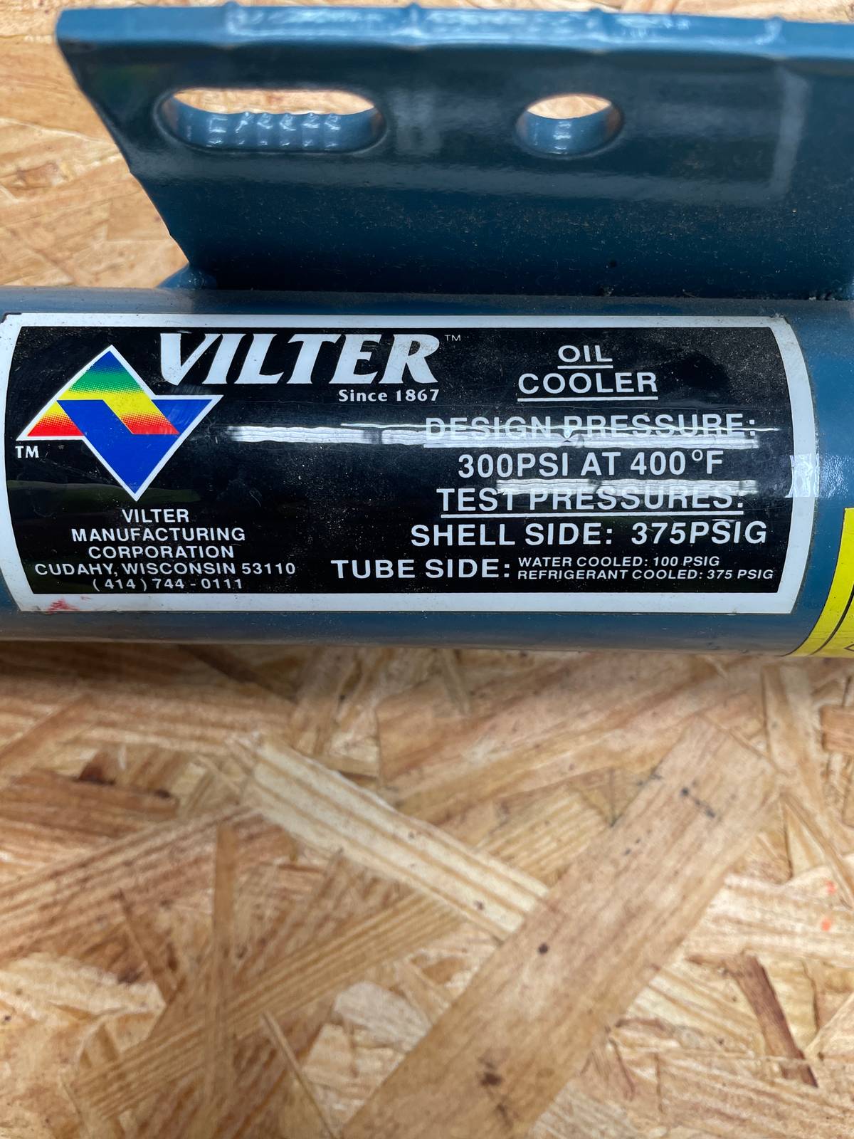 Vilter Oil Cooler. Design Pressure: 300 PSI @ 400 F. Test Pressures: Shell Side: 375 PSIG. Tube Side: Water Cooled: 100 PSIG. Refrigerant Cooled: 375 PSIG.