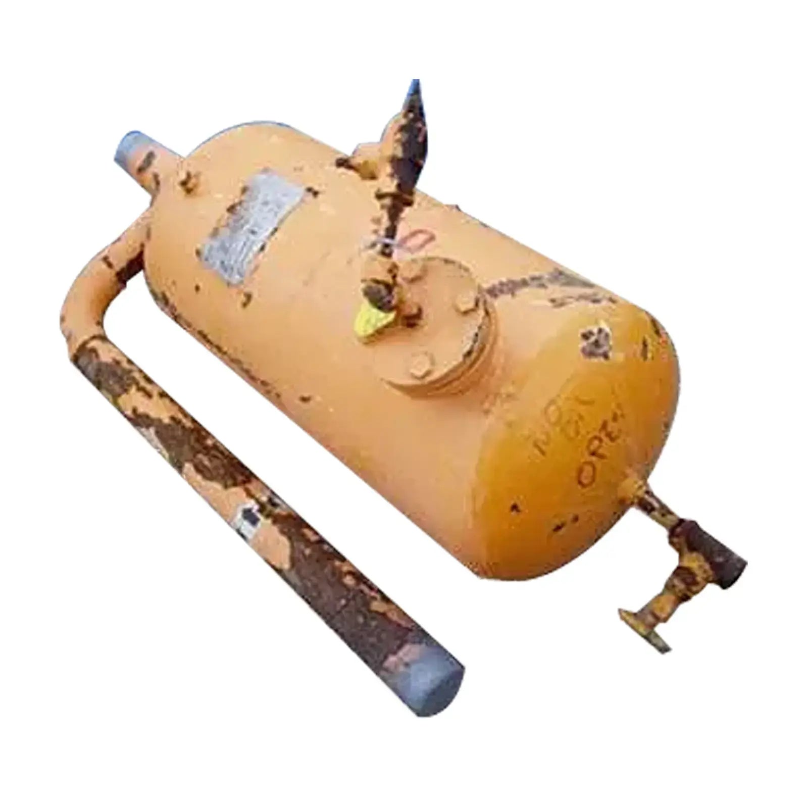 Vilter Oil Separator Tank. Approximate capacity: 25 gallons. Shell side MAWP: 250 psi @ 650 °F. Inside straight wall dimension: 1 ft. 4 in. dia. x 2 ft 4 in. L. Inlets: (2) 3-1/2 in. dia. ports. Outlets: (1) 1/2 in. dia. NPT (female) port. Overall dimensions: 2 ft. 5 in. L x 2 ft. 1 in. W x 4 ft. 2 in. H.