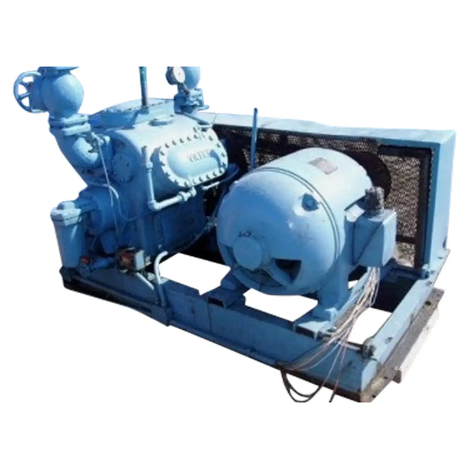 used Vilter Reciprocating Compressor. Model: 440. 6 cylinders. Displacement at maximum rpm: 232 cu. ft./min. General Electric Motor, 75 hp, 1,770 rpm, 440 V, 91 amps, 60 cycles, 3 phase. Inlets/outlets: (2) 3 in. dia. pipes. Overall dimensions: 78 in. L x 48 in. W x 65 in. H.
