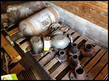 Parts from Vilter 448 Compressor. Shutoff valves, fittings, oil separator vessels. Vessel 1 rating 300 PSI at 400F. Nat'l Bd: 20819. Serial 3-30502-3. Year 1971. 68945H. Vessel 2: Nat'l Bd: 20820. 68945H. (MN)