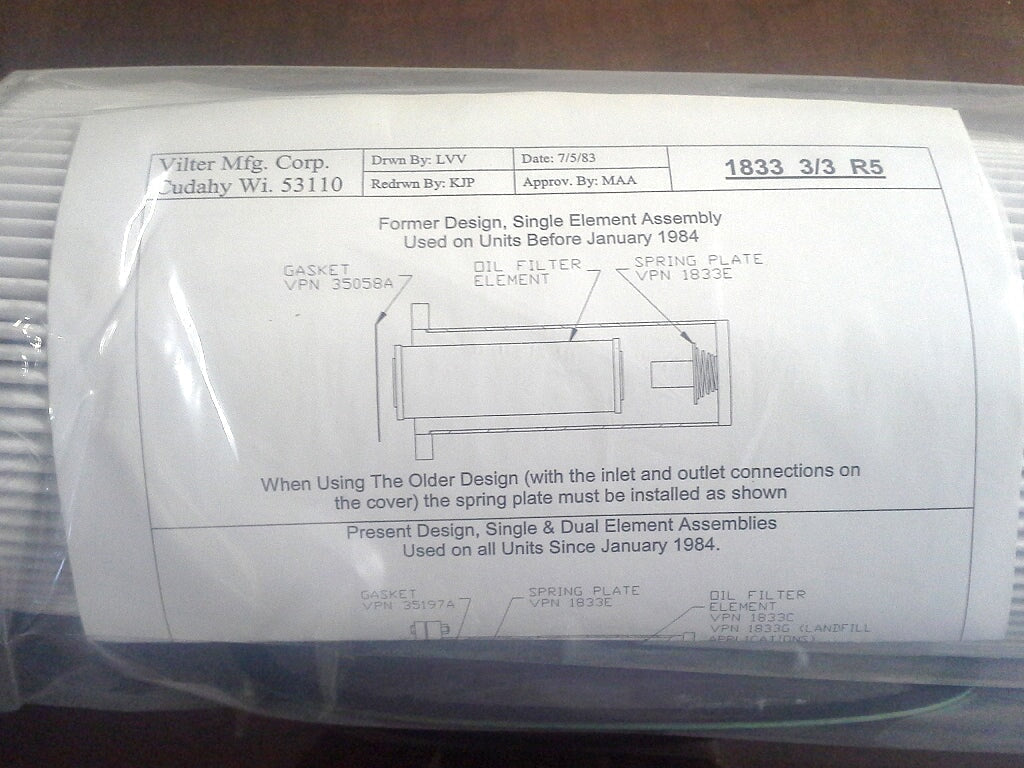 (35) Surplus Unused Vilter Methane Filter Recharge With Gasket. Part No: 1833G. (ACN3).