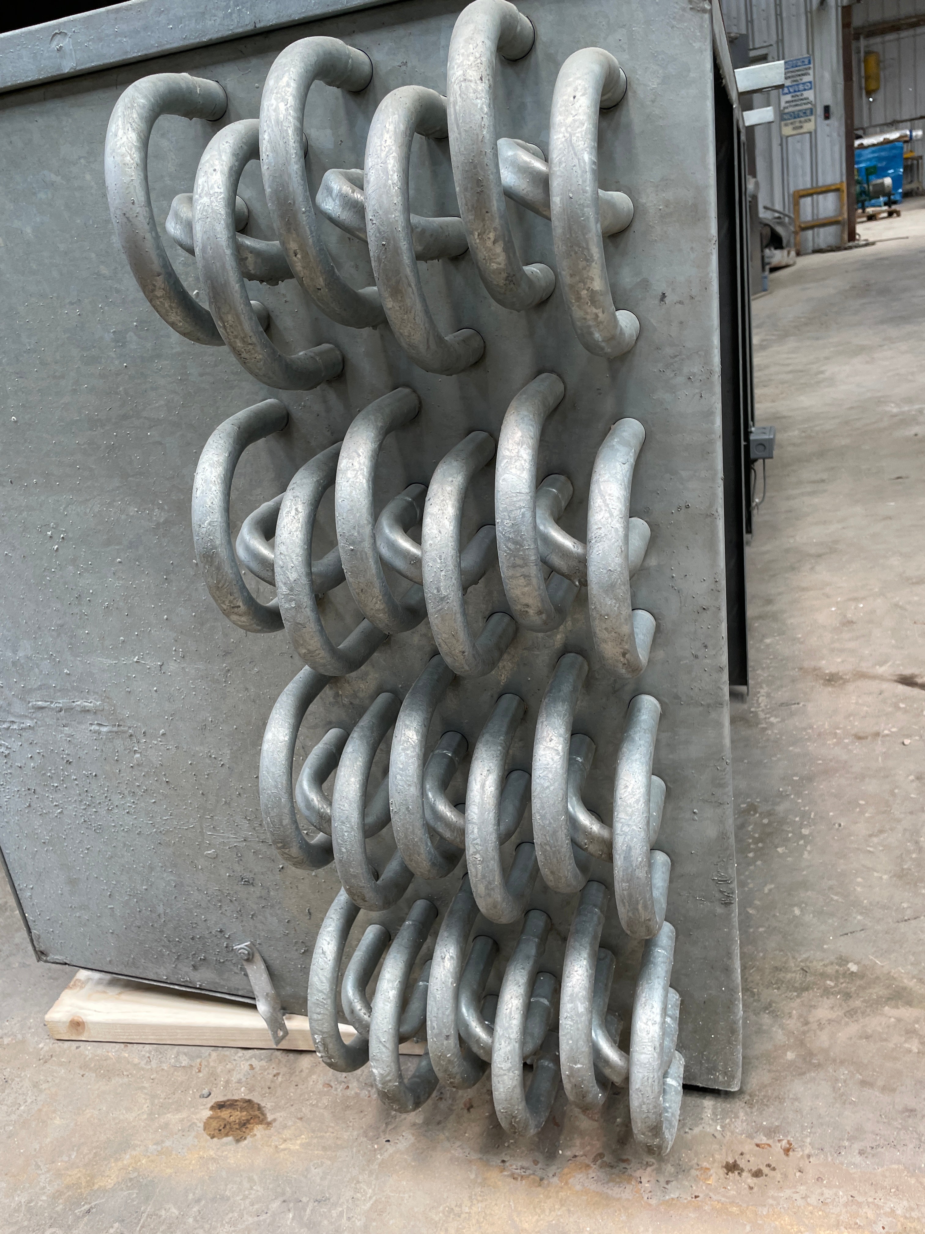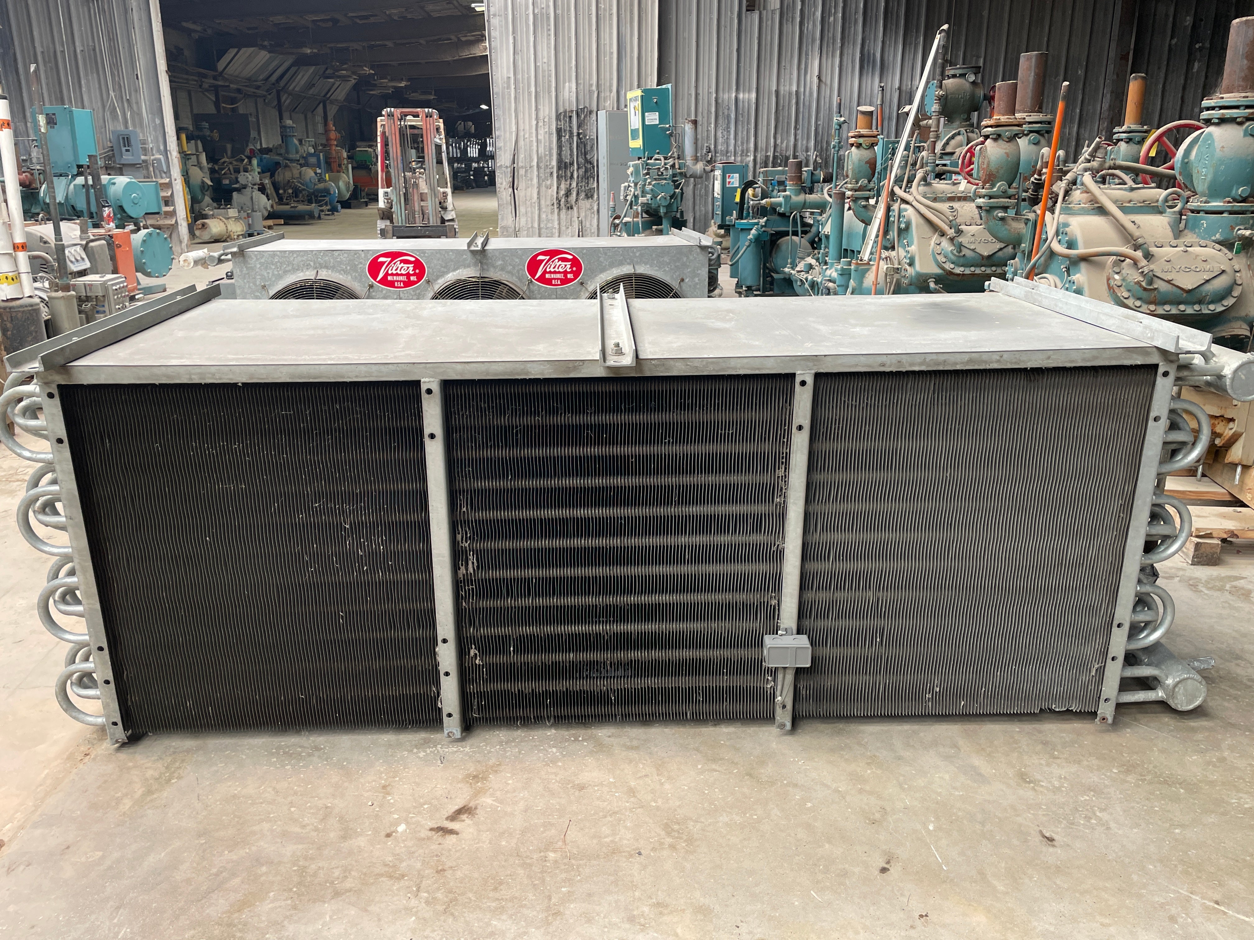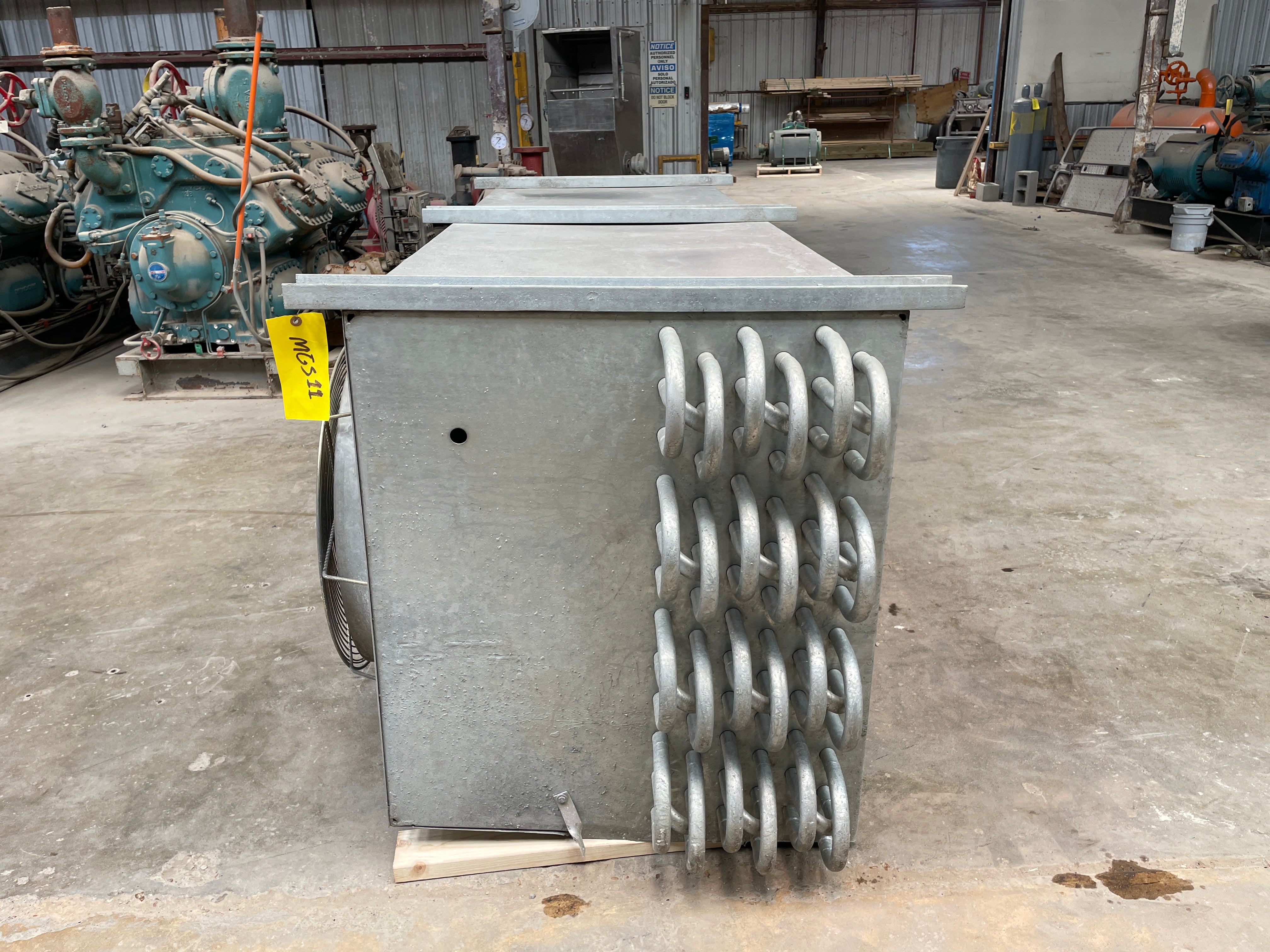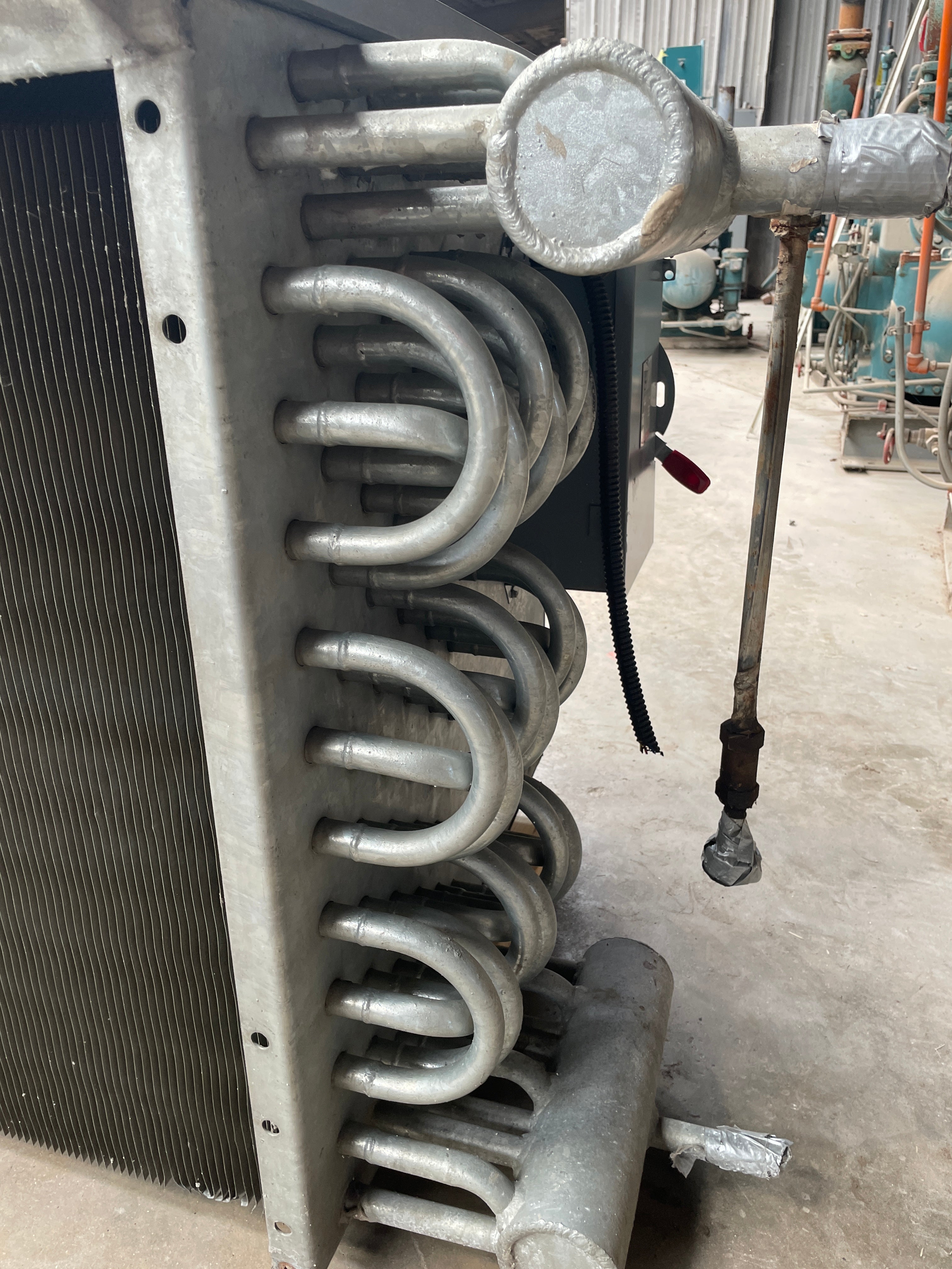 Vilter SC 24-64-1/2-RA-HGC Ammonia Evaporator Coil- 11TR 3 Fans (Low Temperature) This evaporator Coil uses Low Temperature frosted coils. A capacity of 9060 and an estimated tonnage of 11TR. An Airflow of 15000 CFM and a face velocity of 625 FPM. Direct Expansion top fed coils with a gas defrost system. This unit was previously ran with Ammonia. The package includes 3 motors for the fans. The evaporator coil is the component in your AC system that absorbs the heat from the air. The higher the tonnage the larger the area that can be cooled down.