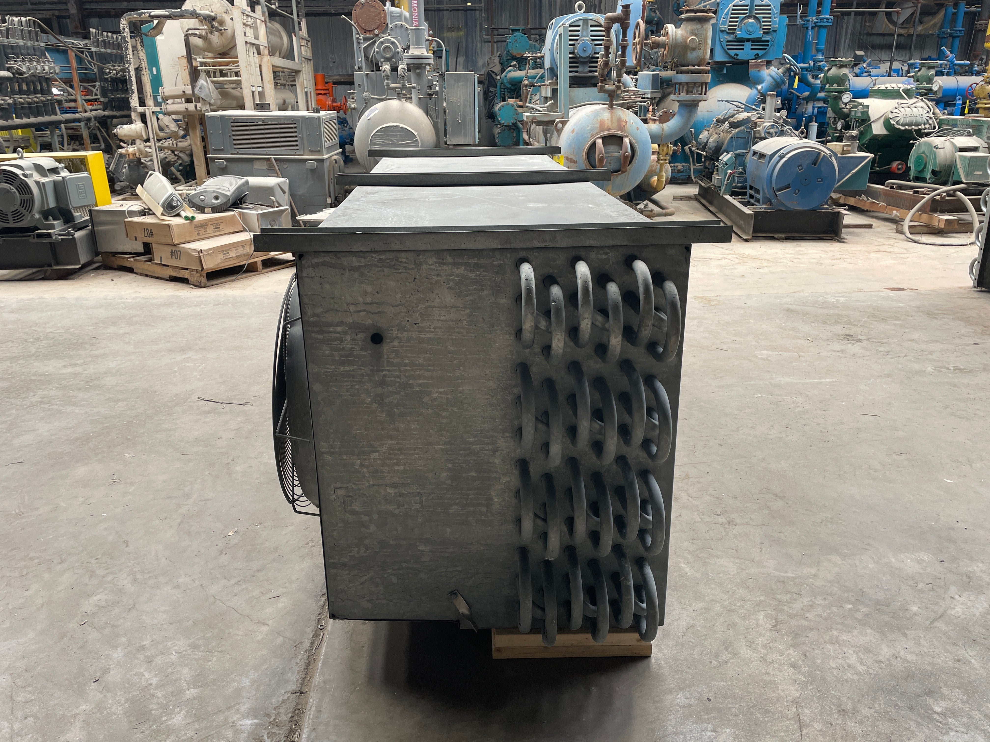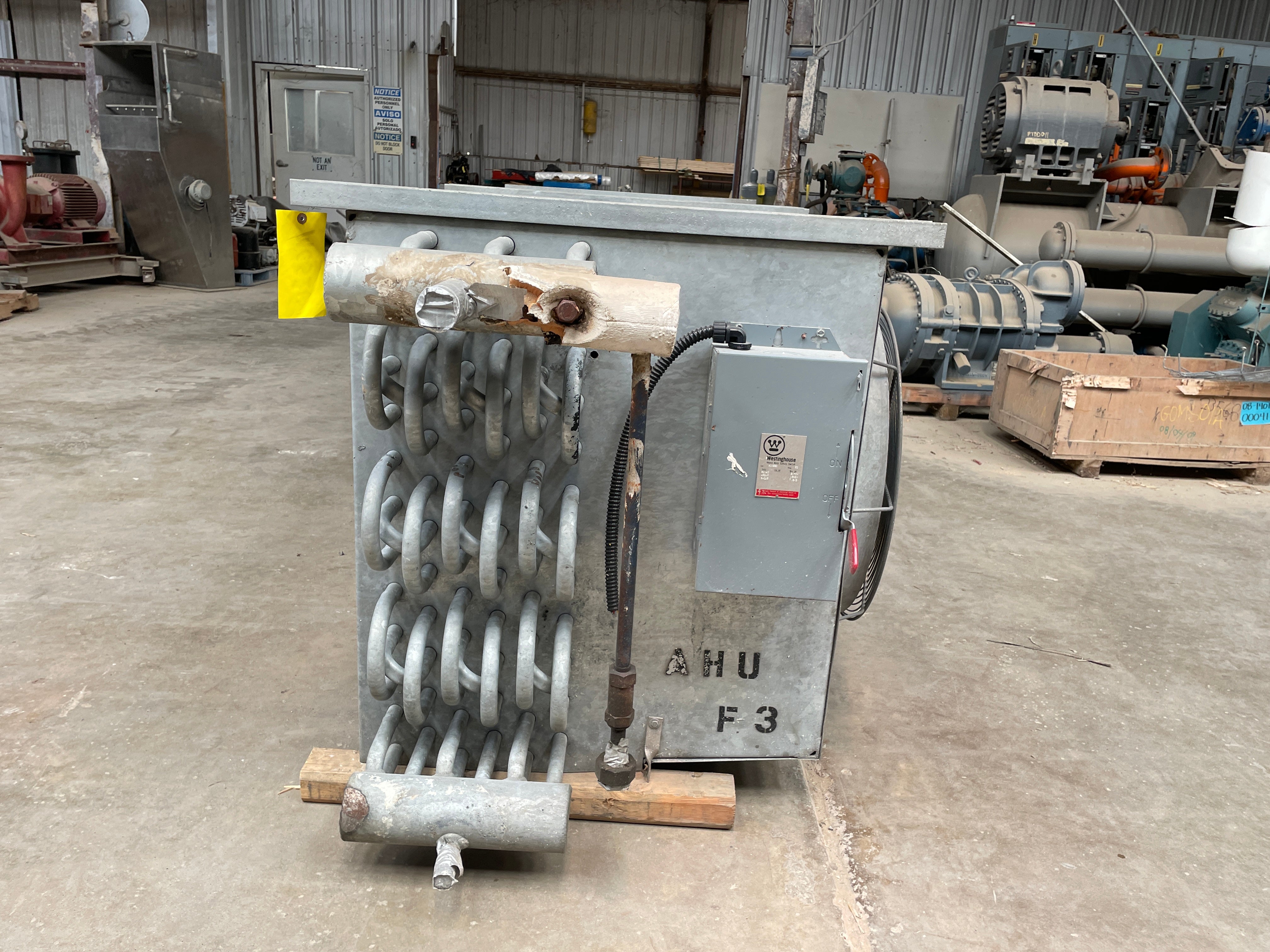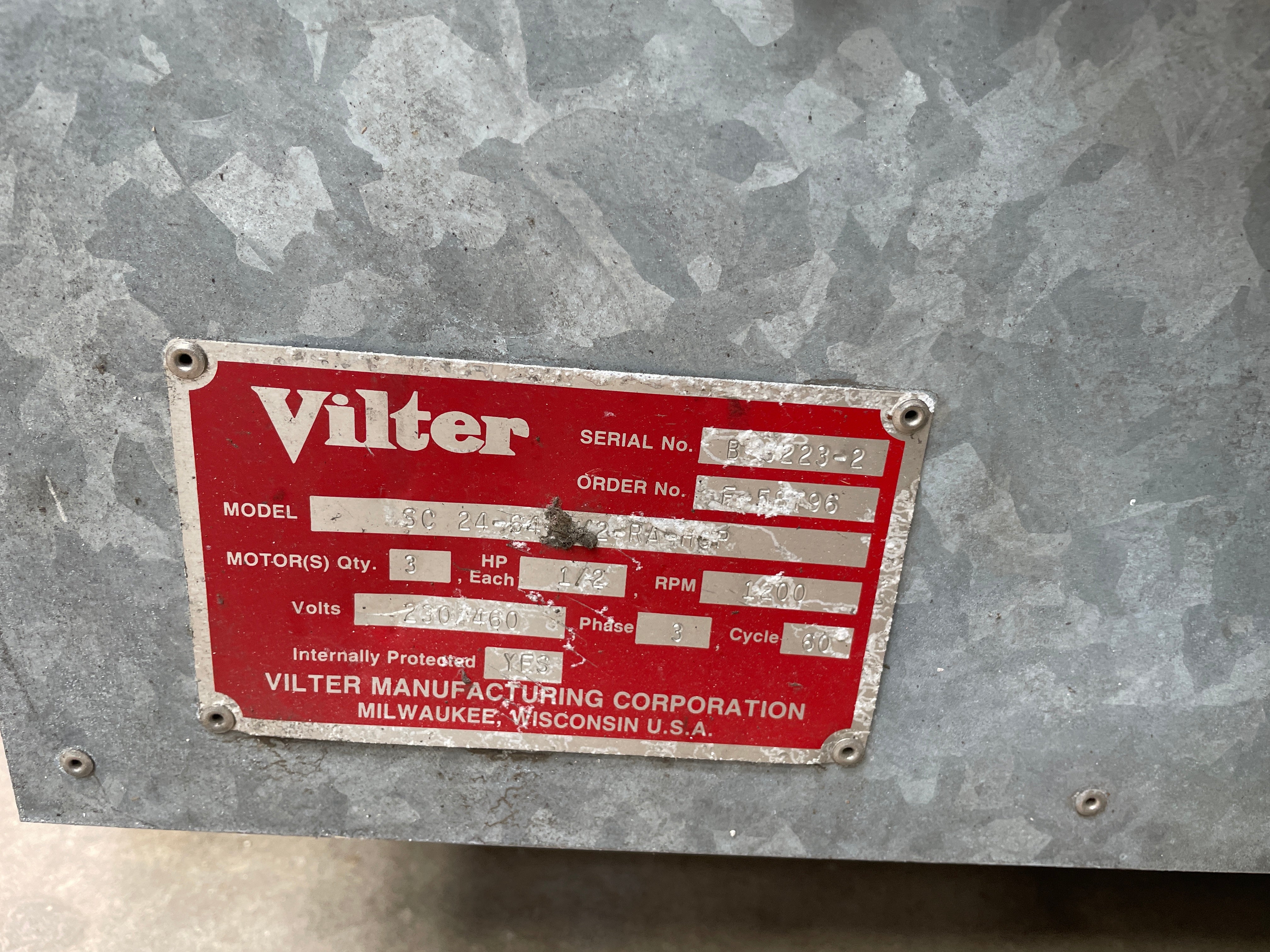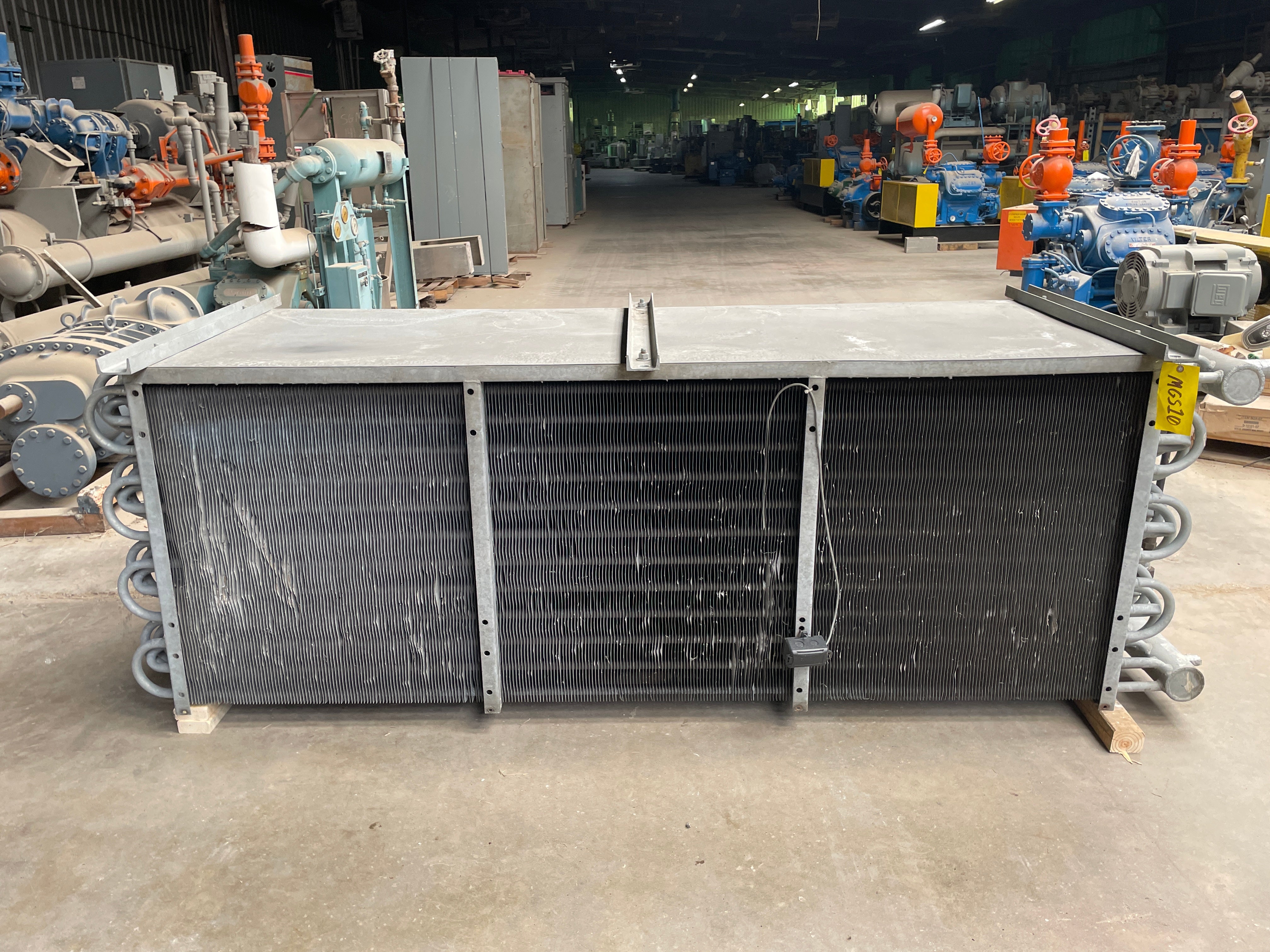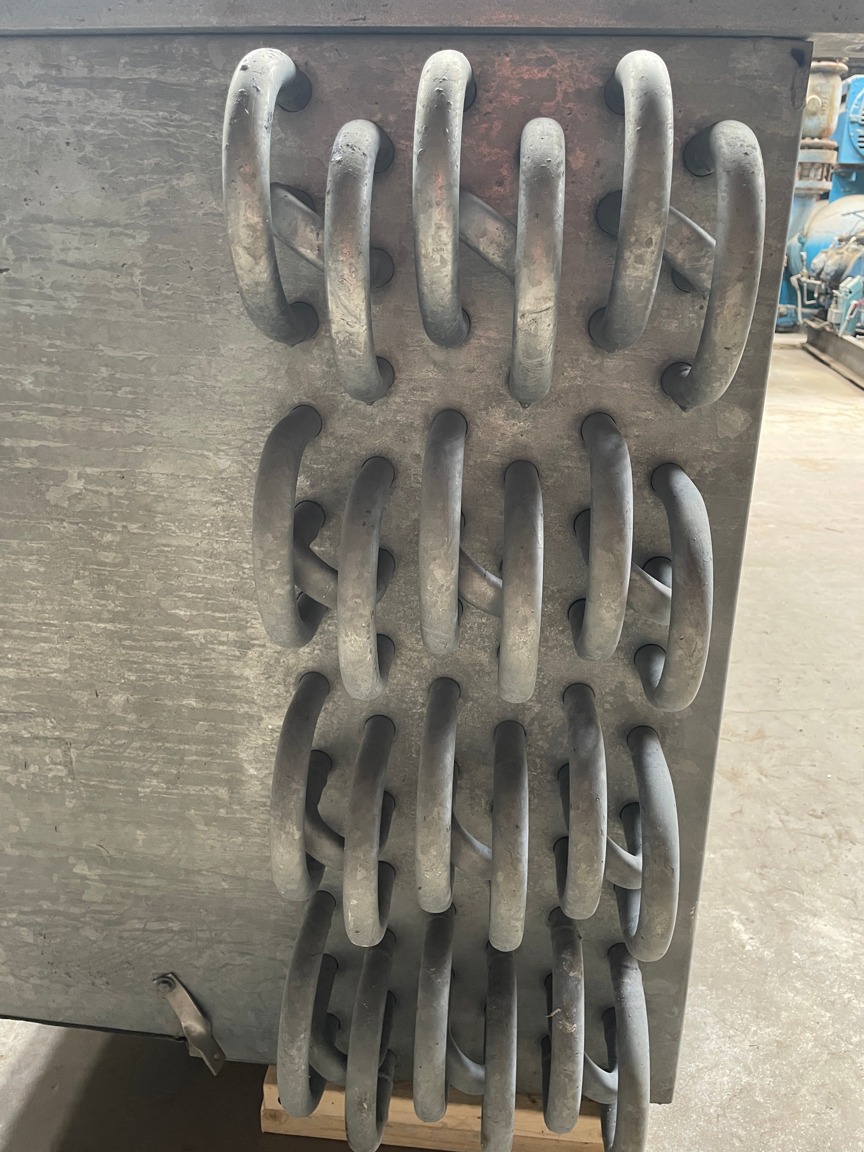 Vilter SC 24-64-1/2-RA-HGC Ammonia Evaporator Coil- 11TR 3 Fans (Low Temperature) This evaporator Coil uses Low Temperature frosted coils. A capacity of 9060 (BTUH / °F TD) and an estimated tonnage of 11(TR) @15TD. An Airflow of 15000 CFM and a face velocity of 625 FPM. Direct Expansion top fed coils with a gas defrost system. This unit was previously ran with Ammonia. The package includes 3 motors for the fans.