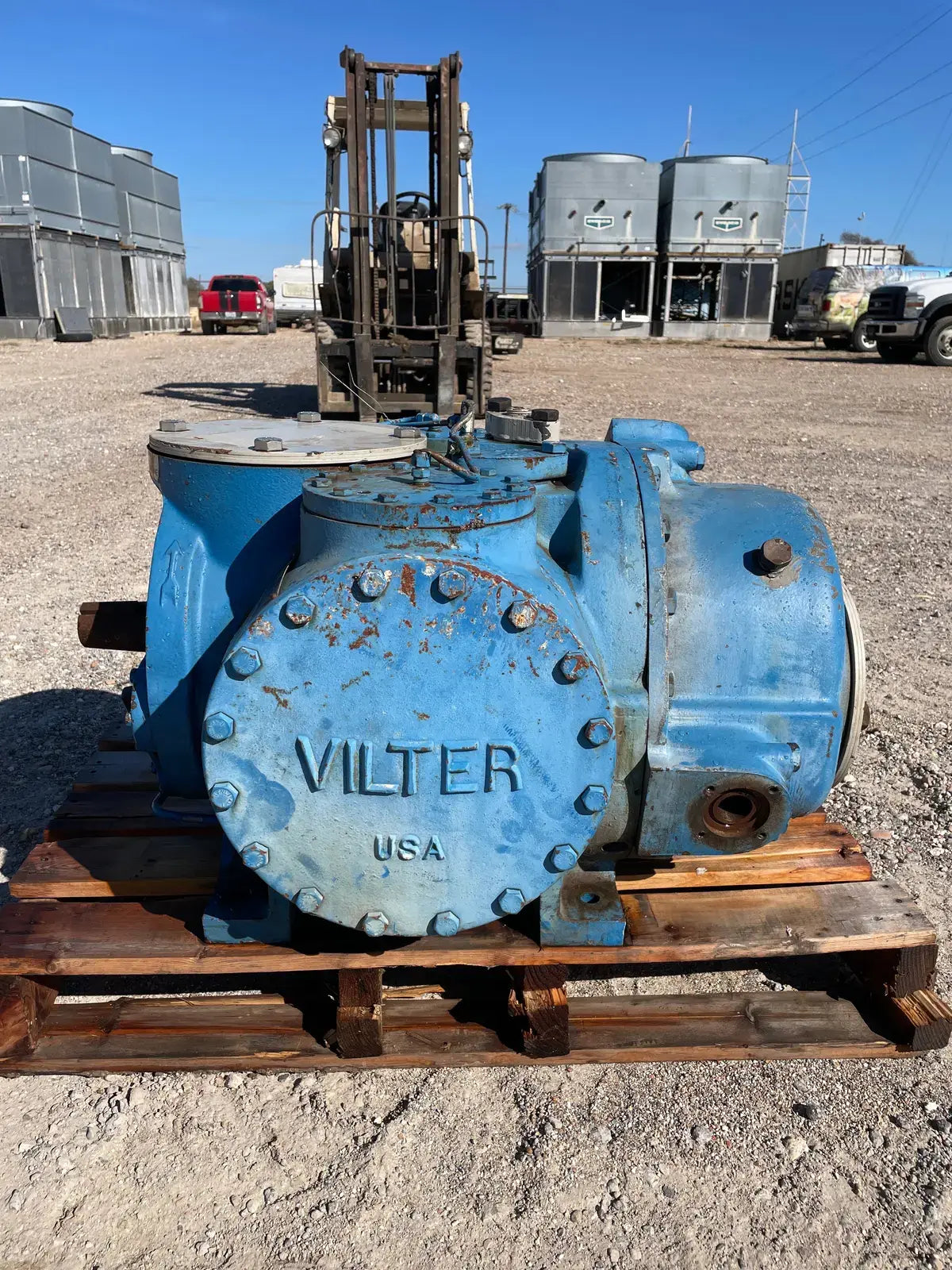 Used Vilter Single Screw Gas Compressor. Model: VSSG601. Serial 4207. Order: SO69766. Max RPM: 3600. MAWP: 535 PSIG. Test pressure: 600 PSIG. Rated discharge pressure: 480 PSIG. Nominal displacement at 3600 RPM: 601 CFM. Previous application was methane gas compression. *Note: there appears to be rotor damage.