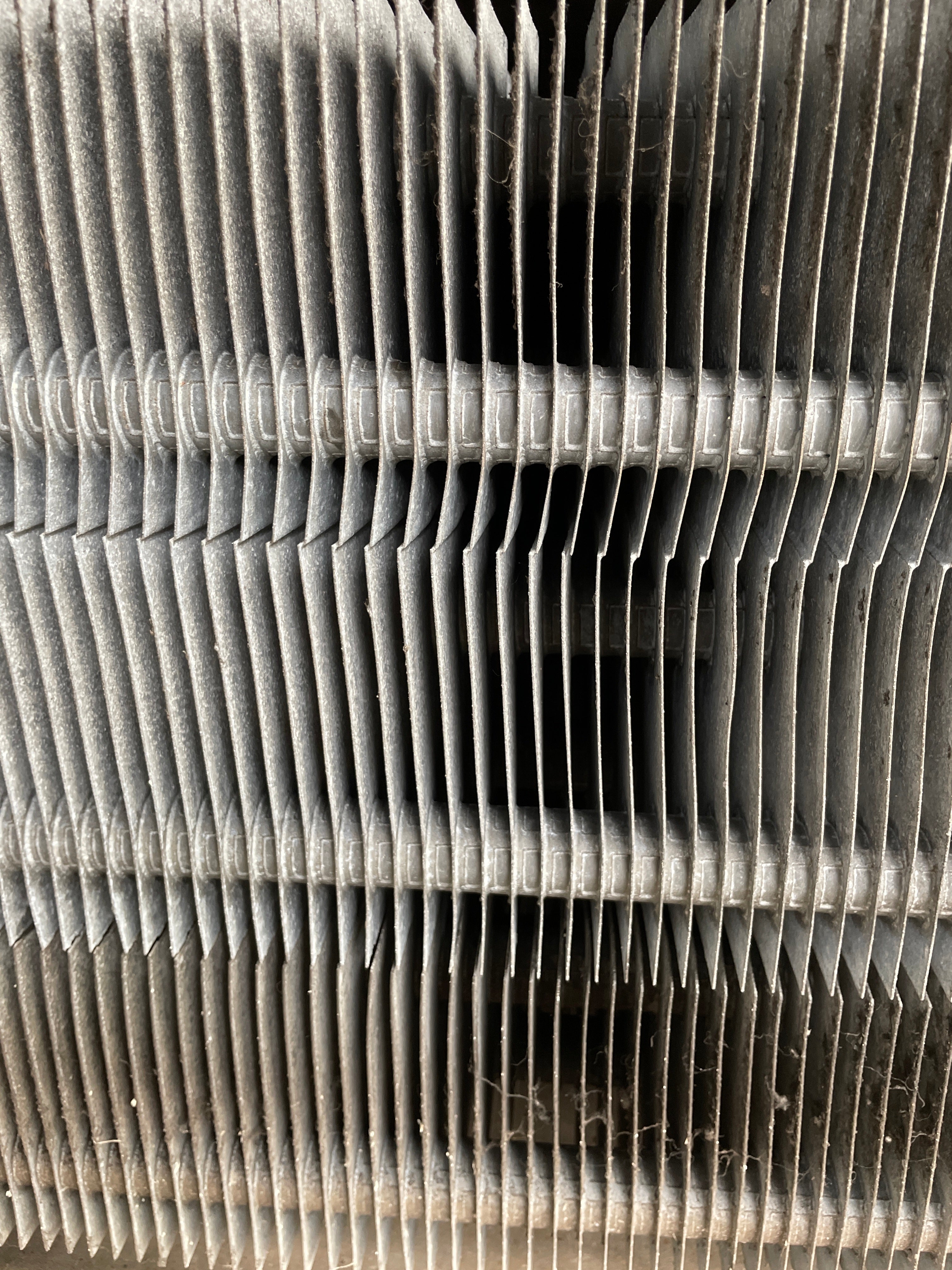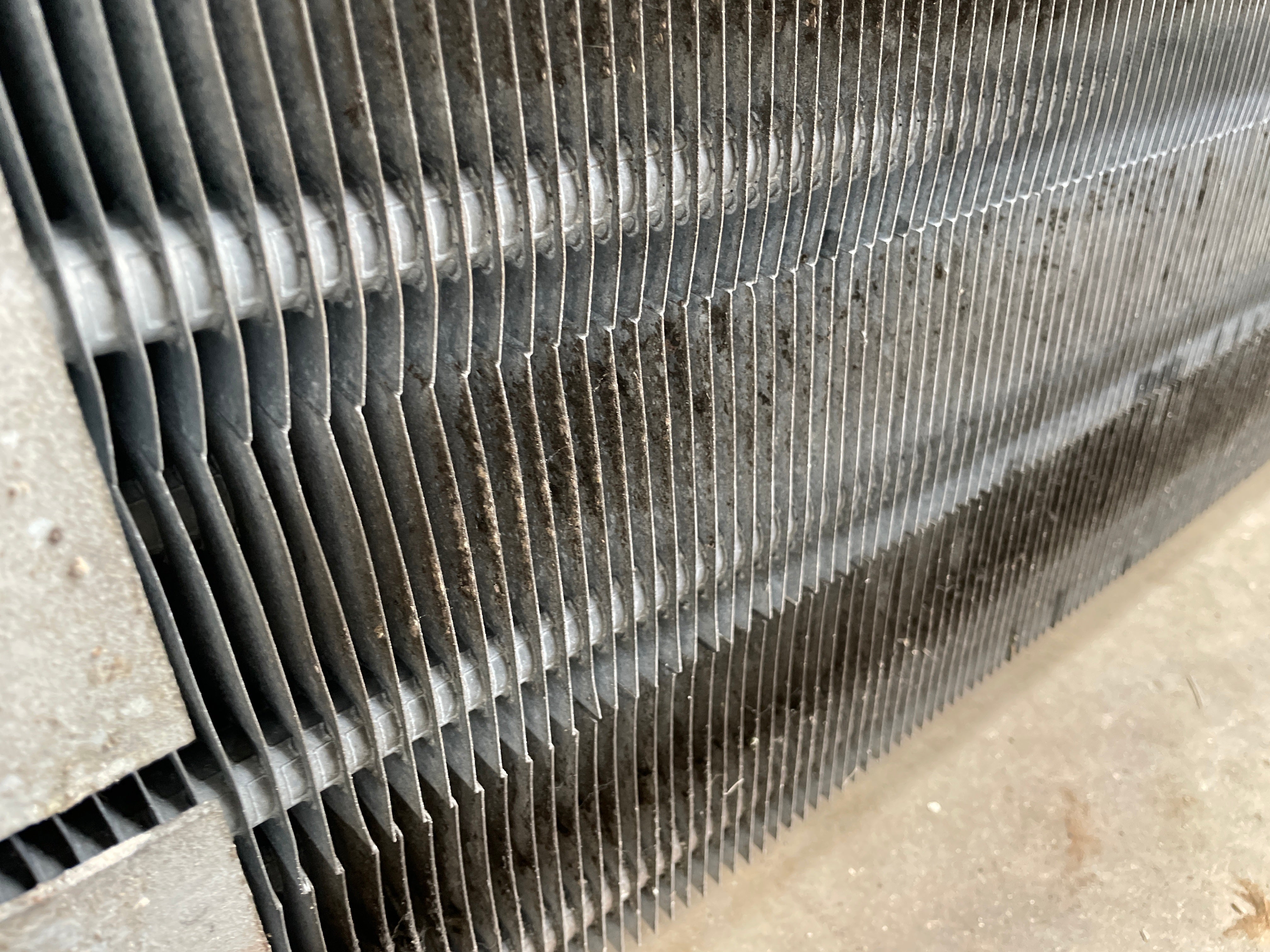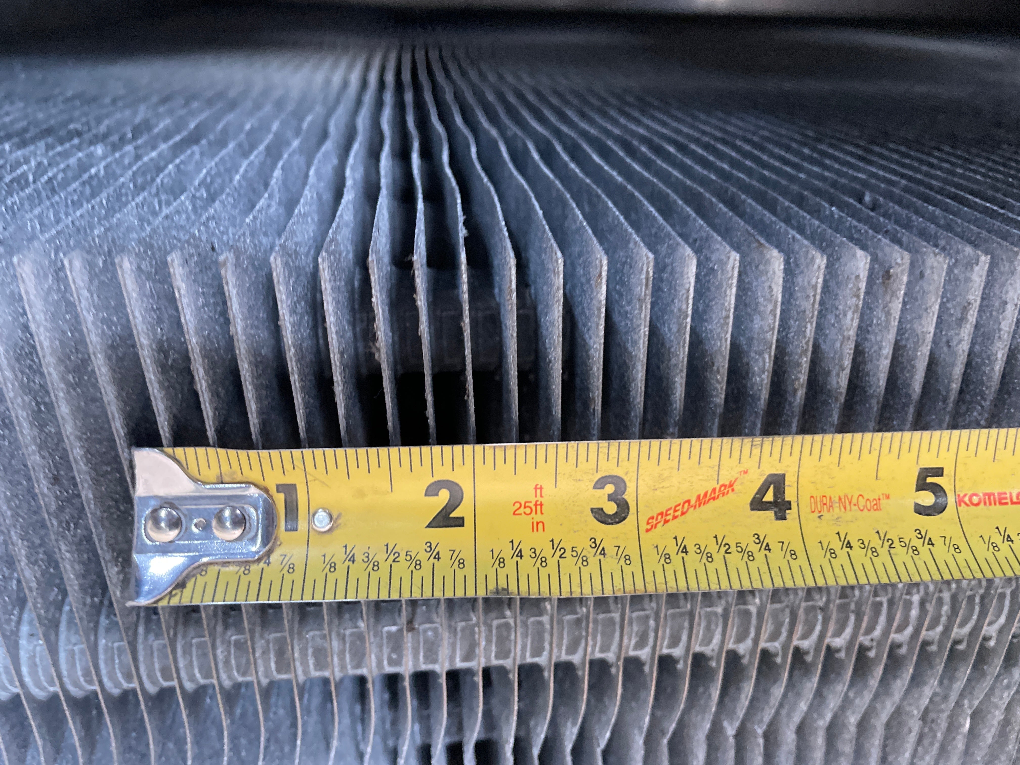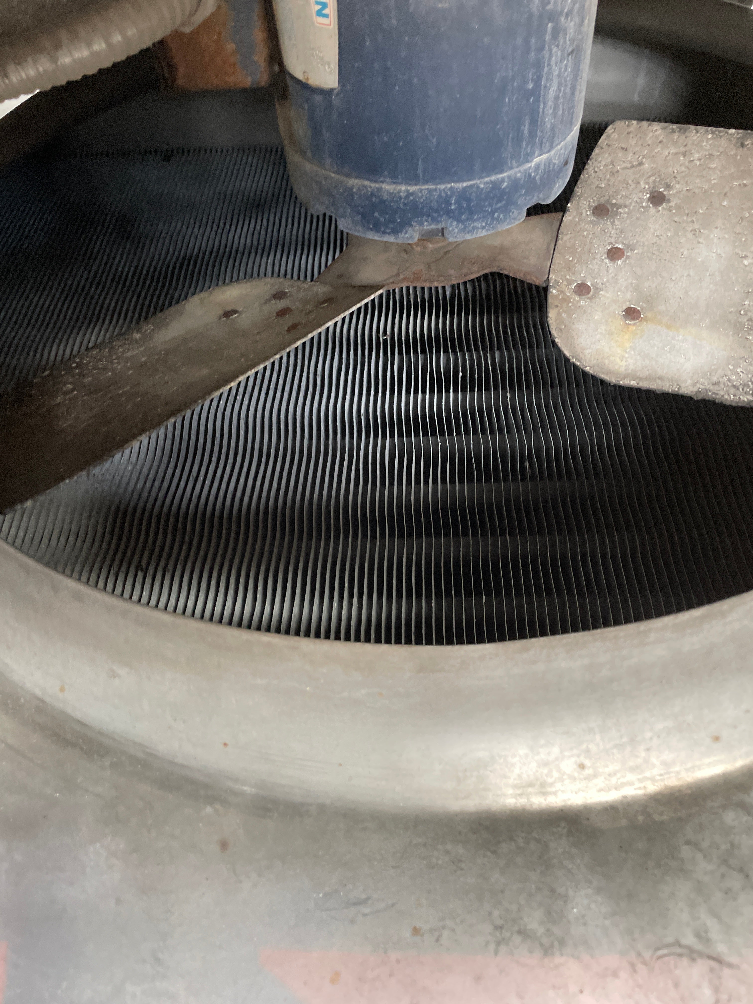Vilter UF 21-64-1-2-XA-HGC Ammonia Evaporator Coil - 9 TR, 2 Fans (Low Temperature) This evaporator Coil uses Low Temperature frosted coils. A capacity of 7560 (BTUH / °F TD) and an estimated tonnage of 9(TR) @15TD. An Air Flow of 11600CFM and a face velocity of 550 FPM. Direct Expansion top fed coils with a gas defrost system. This unit was previously ran with Ammonia. The package includes 2 motors for the fans.