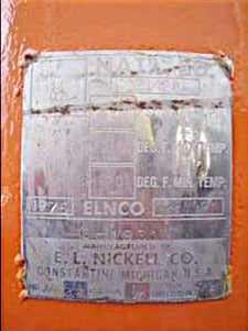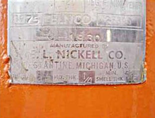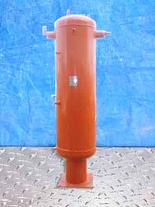 Vilter Vertical Oil Separator- 80 Gallon. S/N: B-56216-1. Nat'l Bd: 7790. Refrigerant: ammonia. Maximum operating pressure: 250 psi. Maximum operating temperature: 650 °F. Inlets/outlets: (1) 3/4 in. dia. port, (2) 1 in. dia. ports, (2) 4 in. dia. ports. Overall dimensions: 3 ft. 2 in. L x 2 ft. W x 8 ft. 5 in. H.