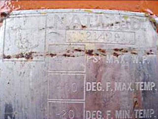 - Tank MAWP (PSI at temp): 250 PSI @ 650F