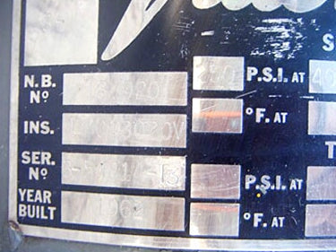 - Tank MAWP (PSI at temp): 250 psi @ 400°F