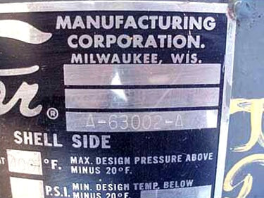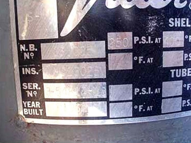 - Tank MAWP (PSI at temp): 250 psi @ 400°F
