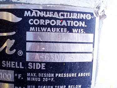 - Tank MAWP (PSI at temp): 250 psi @ 400°F
