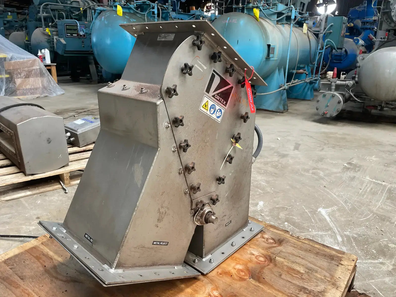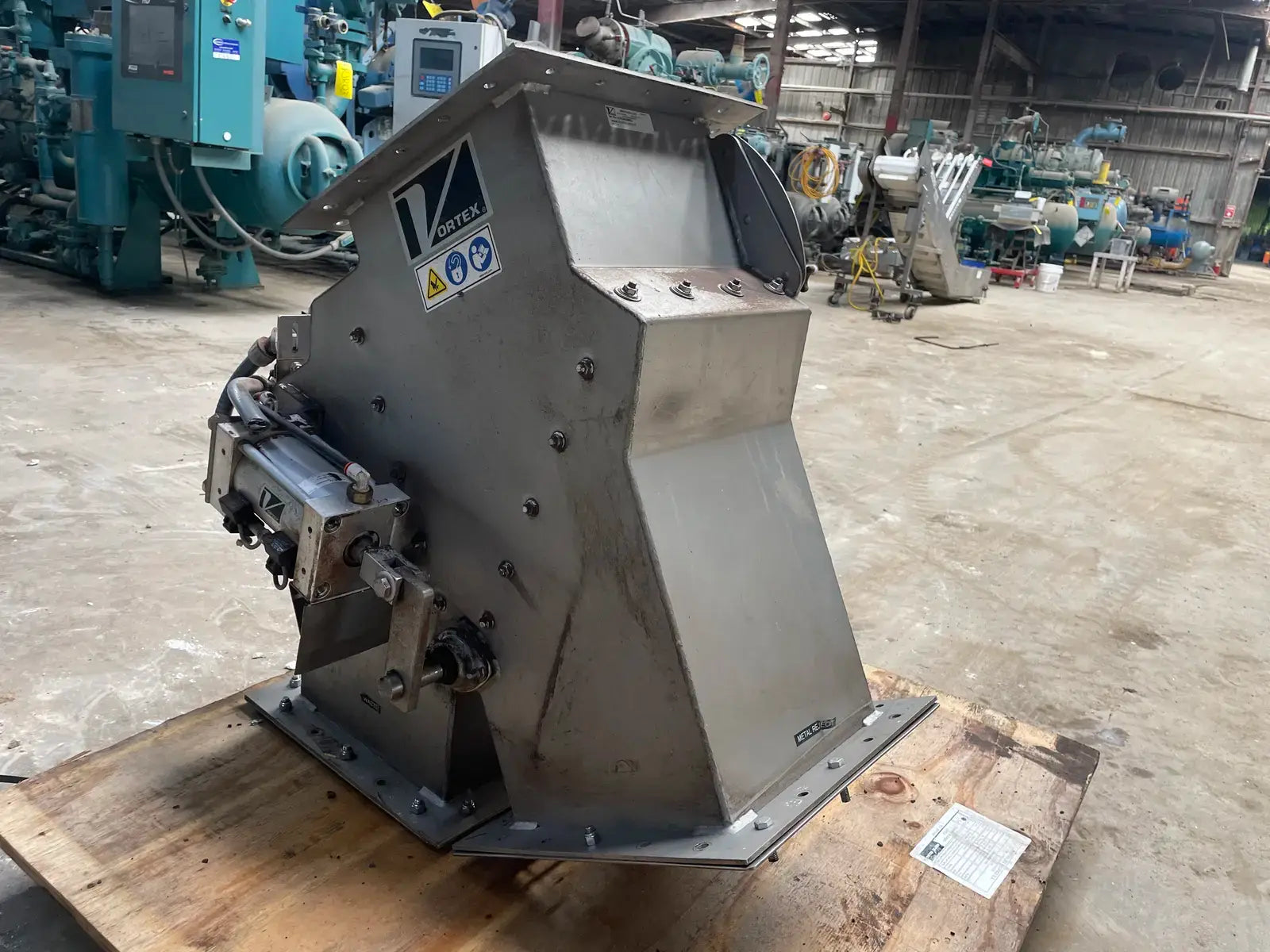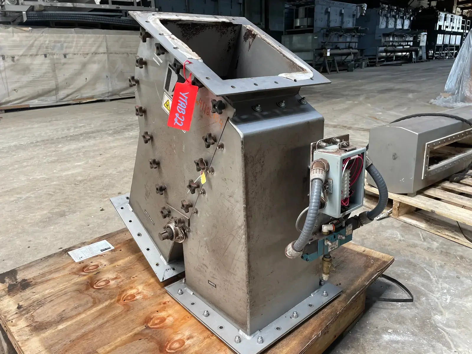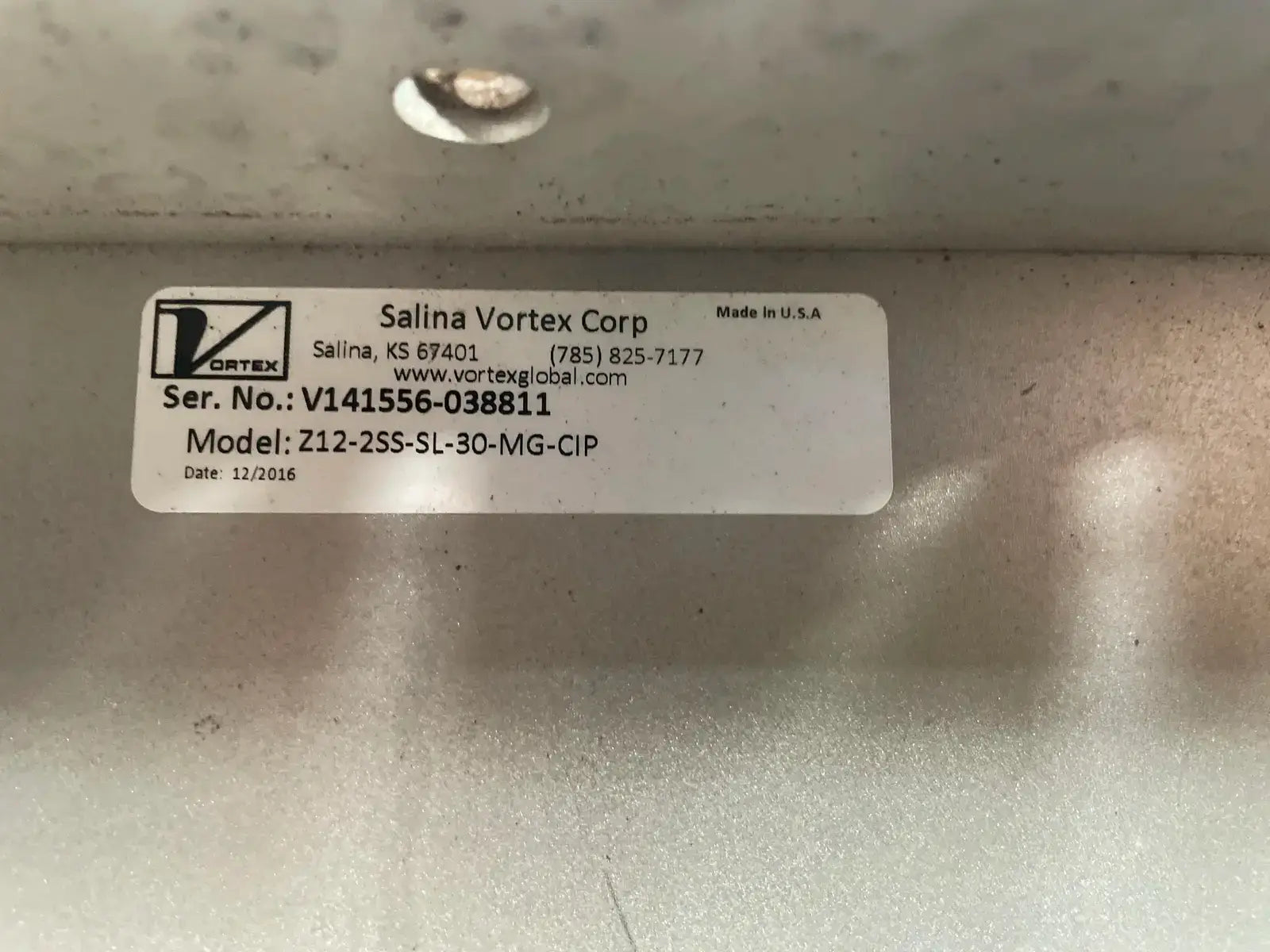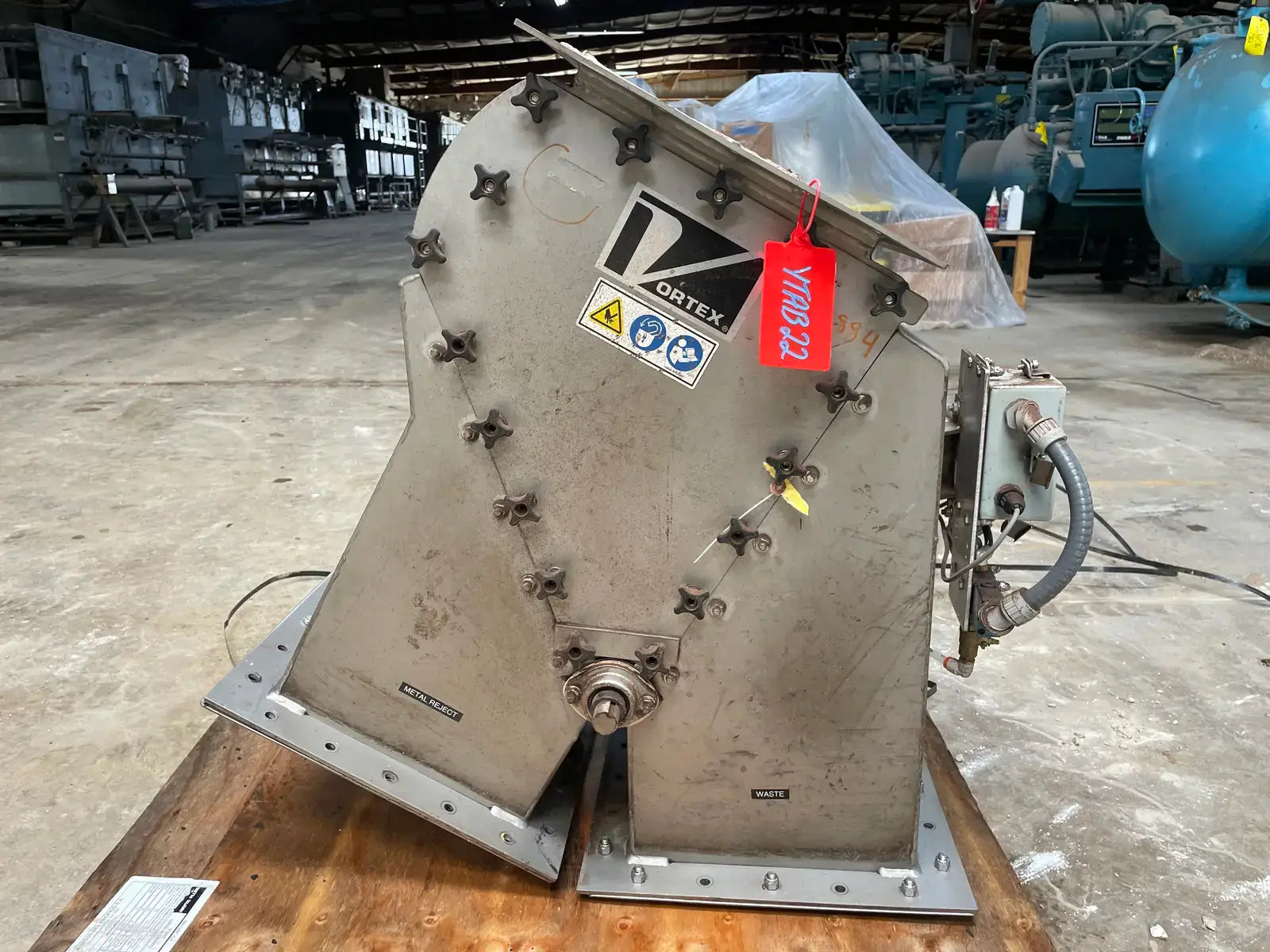 Vortex 2-Way Seal Title Diverter. Model: Z12-2SS-SL-30-MG-CIP. Serial No: V141556-038811. Material: 316L Stainless Steel. Square Bore. Straight Line Model. Previously used for metal and waste.