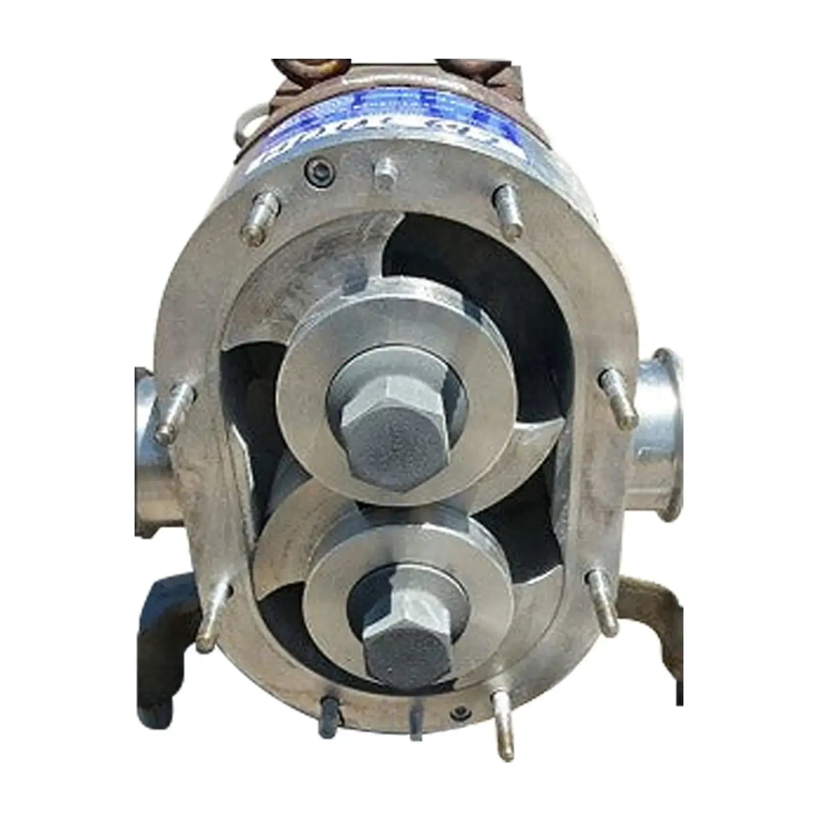 Waukesha Cherry-Burrell SPX Universal 2 Positive Displacement Pump. Model 130-U2. Serial 378733-05. Displacement per revolution: 0.253 gallons. Nominal capacity to 150 GPM. Maximum pressure: 200 PSI. Baldor Reliance Washdown Duty Motor: 10 HP, 208-230/460V, 28-27/13.5 amps, 1770 RPM, 3-phase, 60 Hz, 215TC Frame. Nord geardrive ratio 4.48 (395 final RPM / 99 GPM). Ports: 3 in. S-line. Overall dimensions: 4 ft. 3 in. L x 1 ft. 6 in. W x 2 ft. H.