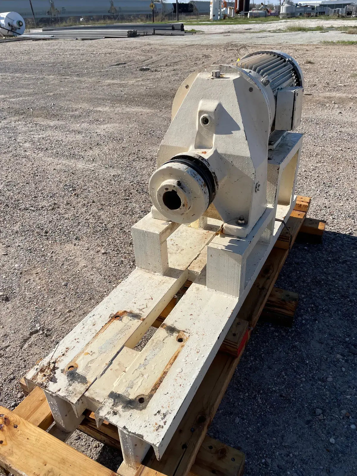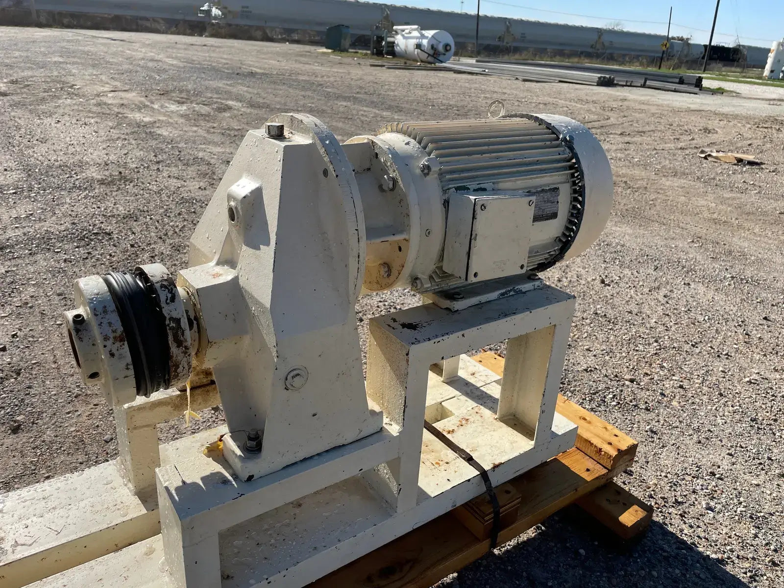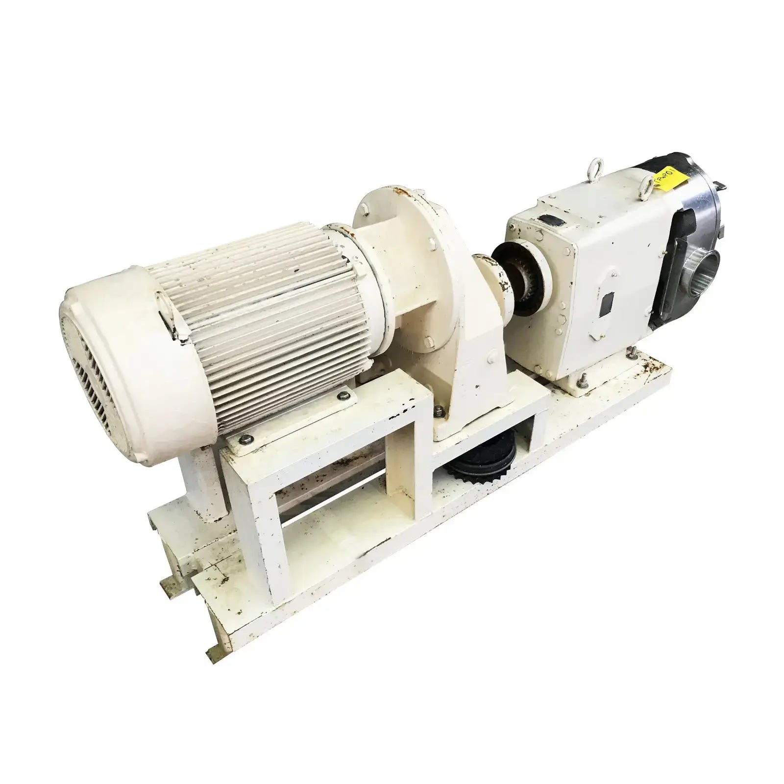 Waukesha Model 220 Positive Displacement Pump. Serial: 15452 SS. 3A Sanitary. Universal I series. Maximum pressure: 200 PSI. Flow rate for new pump is 310 GPM with required horsepower and RPM. Displacement per revolution: 0.522 gallon. Ports: 4 in. I-line (sanitary clamp). US Electrical s Unimount Enclosed High Efficiency Motor: 10 HP, 1755 RPM, 208-230/460V, 60 Hz, 3-phase, Frame 215TC. Geardrive nameplate missing.