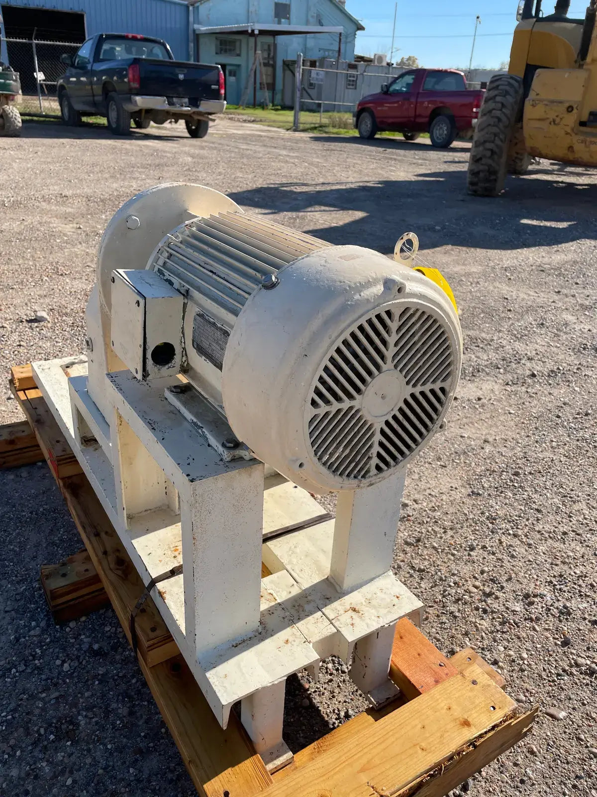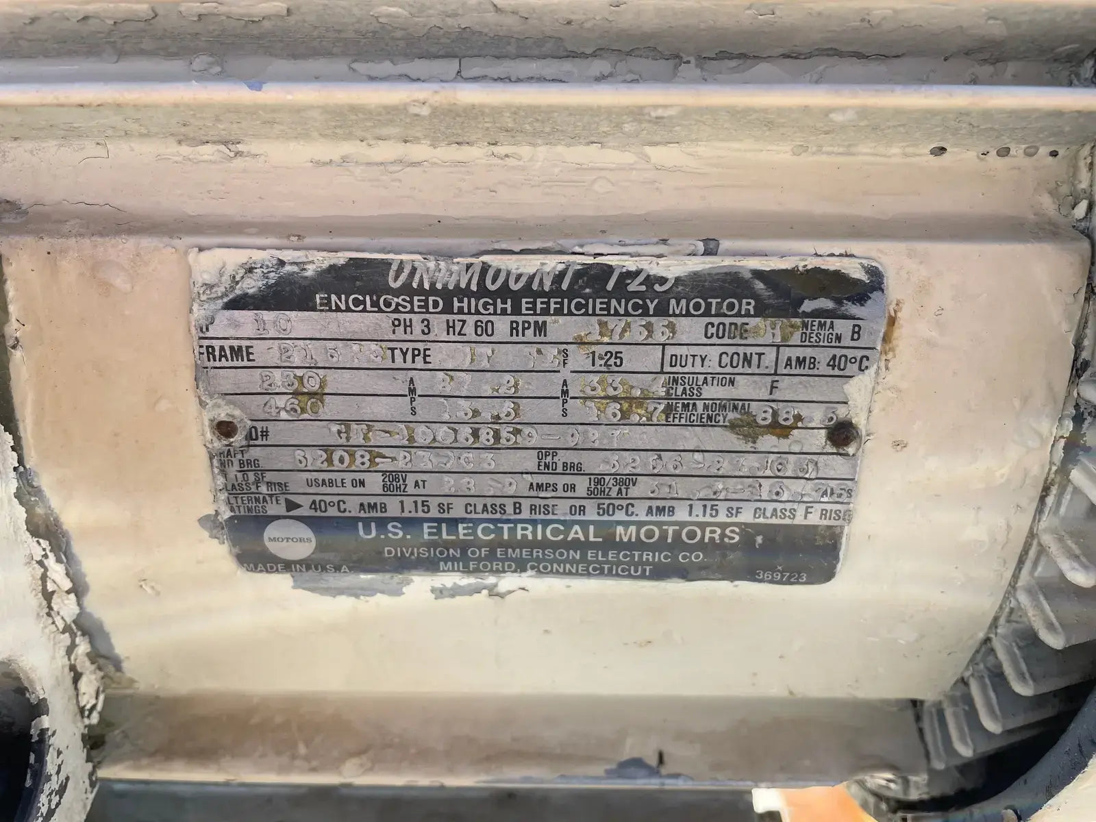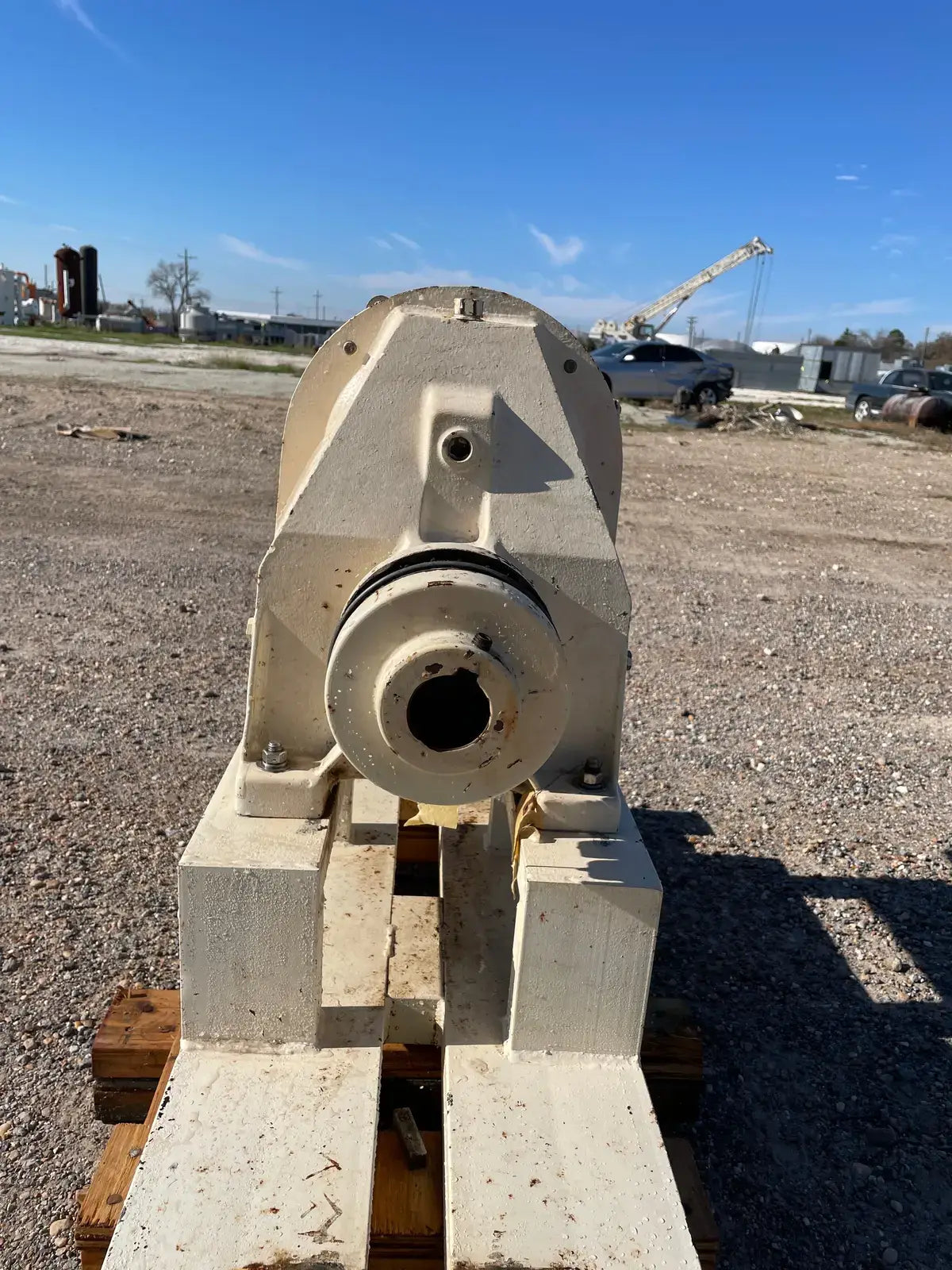 Waukesha Model 220 Positive Displacement Pump. Serial: 15452 SS. 3A Sanitary. Universal I series. Maximum pressure: 200 PSI. Flow rate for new pump is 310 GPM with required horsepower and RPM. Displacement per revolution: 0.522 gallon. Ports: 4 in. I-line (sanitary clamp). US Electrical s Unimount Enclosed High Efficiency Motor: 10 HP, 1755 RPM, 208-230/460V, 60 Hz, 3-phase, Frame 215TC. Geardrive nameplate missing.