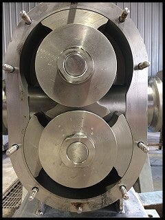 SPX Waukesha Cherry-Burrell Positive Displacement Pump. Model: 220. S/N: 392642R2 05. 3A Sanitary. Universal I series. Previously remanufactured. Flow rate for new pump is 310 gpm with required horsepower and RPM. Discuss with salesperson your process and product to determine if this pump should handle your specific duty. Displacement per revolution: 0.522 gallon. Maximum pressure: 200 PSI. Estimated flow rate with this gear drive is 177 GPM. SEW-Eurodrive gear drive ratio: 5.2 (final RPM 339). Baldor Motor: 15 HP, 460V, 18.5 amps, 1765 RPM, 60 Hz, 3-phase. Inlet/outlet ports: 4 in. dia I-line fittings. Overall dimensions 6 ft. 2 in. L x 1 ft. 10 in. W x 2 ft. 2 in. H. (ACN208-265)