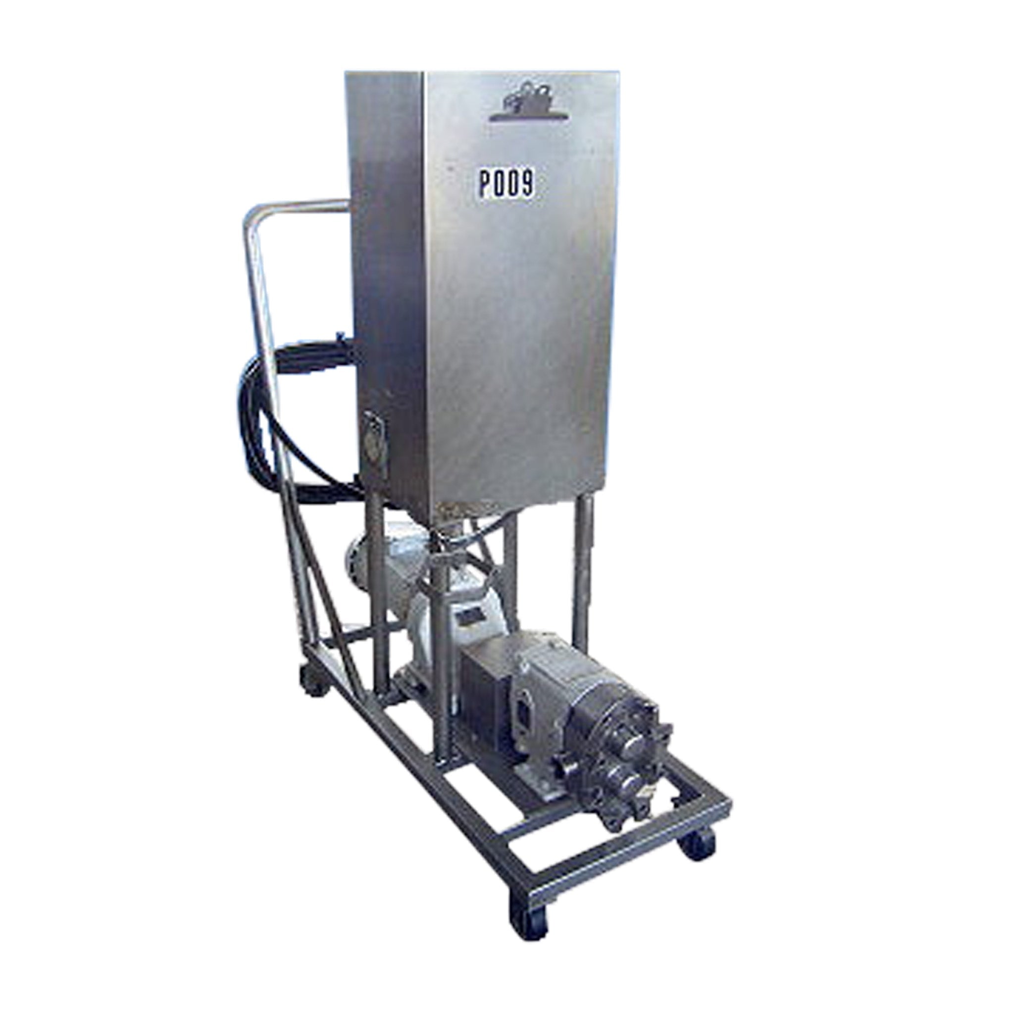 Waukesha Positive Displacement Pump. Model: 030. Flow rate for new pump is 36 gpm with required horsepower and pressure. Discuss with salesperson your process and product to determine if this refurbished pump should handle your specific duty. (2) 4-3/8 in. rotors. (1) 1-1/2 in. s-line inlet. (1) 1-1/2 in. s-line outlet. APG motor drive: 4.1 ratio, 420 rpm in, 563 torque. Allen Bradley 1305 VFD in a Hartel Corp stainless steel enclosure. Overall dimensions: 3 ft. 11-1/2 in. L. x 1 ft. 6 in. W. x 4 ft. 7-7/8 in. H.9(ACN70).