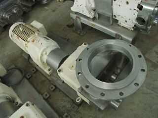 (2) Waukesha, Model: 344, positive pump, 12 in. flanged inlet, 7 in. flanged outlet, 25 hp., stainless construction, 230/460 volts, 3 phase, gear reduced to 135 rpm., mounted to stainless steel base plate.