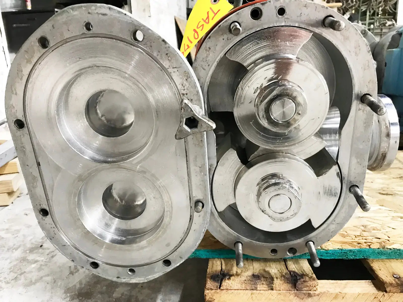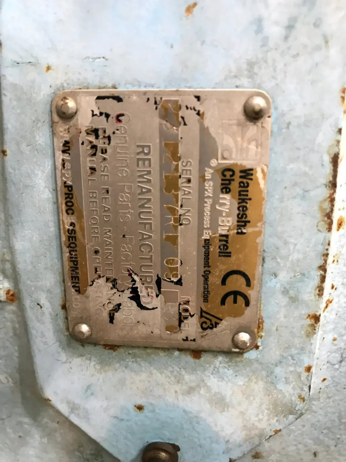 Waukesha Cherry-Burrell Positive Displacement Pump. Model: 130. S/N: 2312137R1-09 Displacement per revolution: 0.254 gallon. Nominal flow rate up to 150 GPM. Max speed: 600 RPM. Weight: 300 LBS. Ports: 3 inch (I-line).