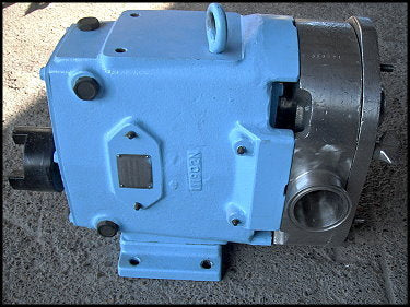 Waukesha Model 060 Positive Displacement Pump. S/N: 356771 04. Flow rate for a new pump is 90 gpm at max rpm of 600. Inlet/outlet: 2 ½ in. S-line fittings. Pump currently has O-ring seals. Pump seals can be changed and a drive can be added to suit your application, consult with your sales person. Overall dimensions: 1 ft. 8 in. L x 1 ft. W x 1 ft. 4 in. H.