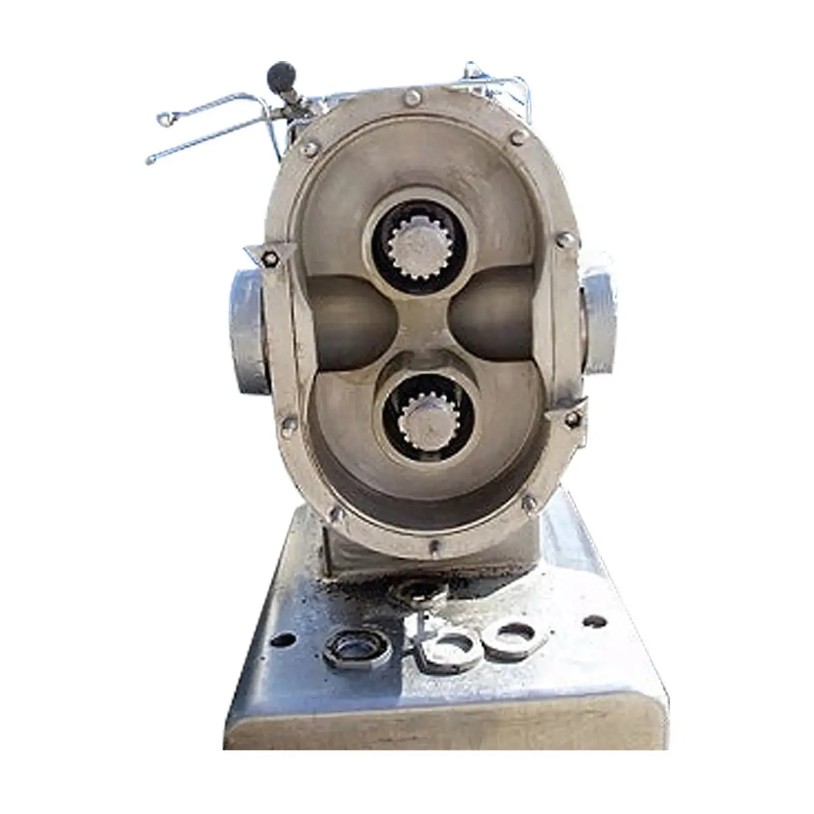 1997 Waukesha Positive Displacement Pump. Model 220. Flow rate for new pump is 310 gpm with required horsepower and pressure. Discuss with salesperson your process and product to determine if this refurbished pump should handle your specific duty. Maximum allowable speed: 600 rpm. 316 stainless steel product contact surfaces. Seal option: double mechanic seal with water flush. Inverter drive motor: 15 hp, 3 phase. Baldor industrial motor: 1/3 hp, 3 phase. Sew-Eurodrive speed reducer, ratio: 13.01:1. Typical applications include: bakery, beverage, canning, confectionary, cosmetics, dairy, meat packaging, and pharmaceutical. This pump is 3-A sanitary rated. Inlets/outlets: (2) 4 in. dia S-line fittings. Overall dimensions: 6 ft. 10 in. L x 1 ft. 6-1/2 in. W x 2 ft. 8 in. H.(ACN226).