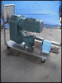 Waukesha Positive Displacement Pump. Model: MFC250 (Metered Flow Control). Serial No: MFC708SS. The M.F.C. model is used in filling / packaging applications where metering is needed. Pumping and metering is done in one unit with an accuracy of 0.5-1%. Displacement per revolution: 0.070 gallons. Nominal Speed: 520 RPM. Pressure: 100 PSI Max. Nominal Capacity: 36 GPM. Nominal Temperature Range: 40ºF to 212ºF. Viscosity Range: 1 CPS to 50,000 CPS. Motor: Reliance Electric Duty Master motor, 7.5 hp, 230/460 V, 21.0/10.5 amps, 1755 rpm, 60 Hz, 3 Phase. Variable speed drive: Reliance Electric Reeves Ultima, size 3A4D, Assem: 12A1, RPM: 216 max, 27 min, 17.1 gear ratio. Inlet/outlet: 1.5 in. S-line fittings. Overall dimensions: 4 ft. 10 in. L x 1 ft. 5 in. W x 3 ft. 6 in. H.