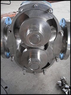 Waukesha Model 320 Positive Displacement Pump. Model: 320. Flow rate for new pump is 450 gpm with required horsepower and pressure. Discuss with salesperson your process and product to determine if this pump should handle your specific duty. Maximum pressure: 200 psi. Maximum speed: 600 rpm. Temperature range: -40ºF to 300ºF. 316 stainless steel pump body, cover and shaft. Features include: ease of cleaning and disassembly, and non-galling, Waukesha 88 alloy rotors. Inlet/Outlet: 6 in. ANSI flange. (ACN303).