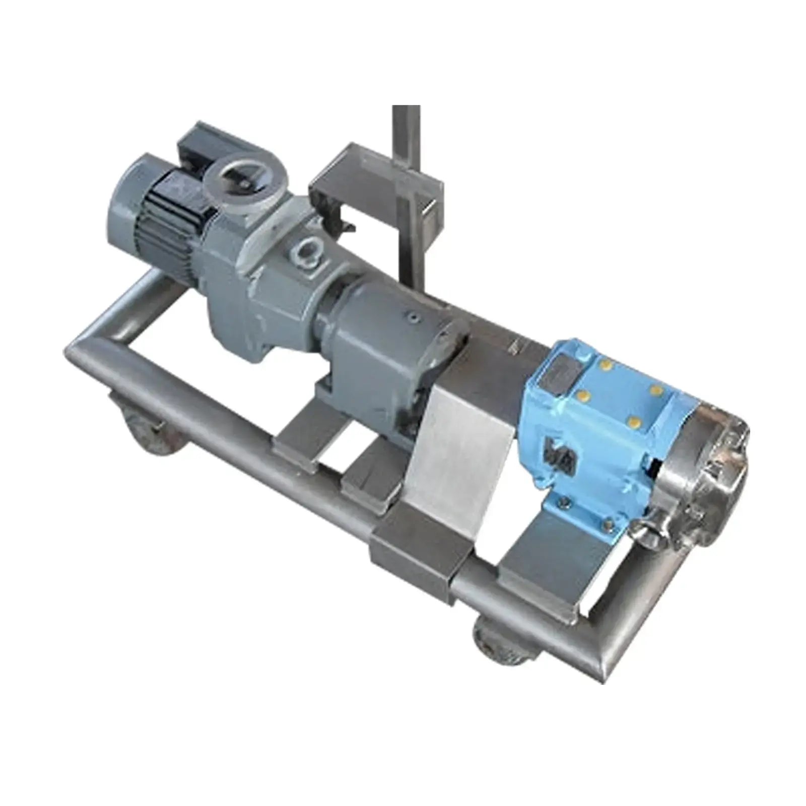 Waukesha Model 6 Positive Displacement Pump, Serial No. 86270 SS. A3-rated. Features motor/gear drive, O-ring seals, and stainless steel base. The Universal I sanitary pump model 006 has a displacement of 0.0082 gallons per revolution. At 600 RPM max speed, the pump should move a nominal 5 GPM at 0 PSI. At 333 RPM, a new pump should move a nominal 2.73 GPM at 0 PSI (worn pumps will have reduced flow/pressure capability). SEW Eurodrive variable speed drive. Motor: 0.5 hp, 230/460 V, 2.1/1.0 amps, 60 hz, 3 phase. Gearbox: 6.78 ratio, 68-333 rpms output. Inlet type, base material, and motor-gear reducer can be changed to suit your needs (ask your salesperson). Ports: 1-1/2 in. S- line fittings. Overall dimensions: 3 ft. L x 1 ft. 4 in. W x 2 ft. 11 in. H. (ACN42)
