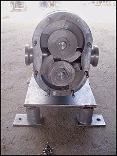 1995 Waukesha Positive Displacement Pump. Model: 60. Flow rate for new pump is 90 gpm with required horsepower and pressure. Discuss with salesperson your process and product to determine if this refurbished pump should handle your specific duty. Features include: easy cleaning and disassembly, three-way mounting options, and non-galling Waukesha 88 alloy rotors. Temperature range: -40ºF to 300ºF. 316 Stainless steel pump body, cover and shaft. Reliance Electric motor: 1 hp, 3 phase. Dodge APG gear drive. Pump is mounted on an elevated stainless steel base. Inlets / outlets: (2) 3 in. dia. I-line fittings. Overall dimensions: 3 ft. 9-1/2 in. L x 1 ft. 4 in. W x 2 ft. 10 in. H.(ACN116).