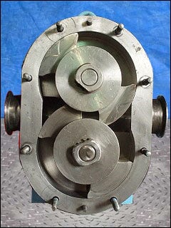 Waukesha Positive Displacement Pump. Model: 60. Flow rate for new pump is 90 gpm with required horsepower and pressure. Discuss with salesperson your process and product to determine if this refurbished pump should handle your specific duty. 316 Stainless steel pump body, cover and shaft. Features include: flexible three-way mountings, non-galling, Waukesha “88” alloy rotors and 3-A and BISCC approval. Inlets/outlets: (2) 2-1/2 in. dia. S-line fittings. Overall dimensions: 1 ft. 6-1/2 in. L x 1 ft. 4-1/2 in. W x 1 ft. 2 in. H.(ACN70).